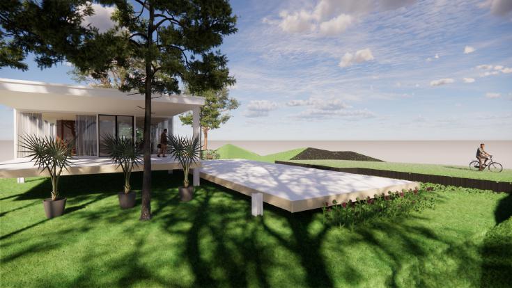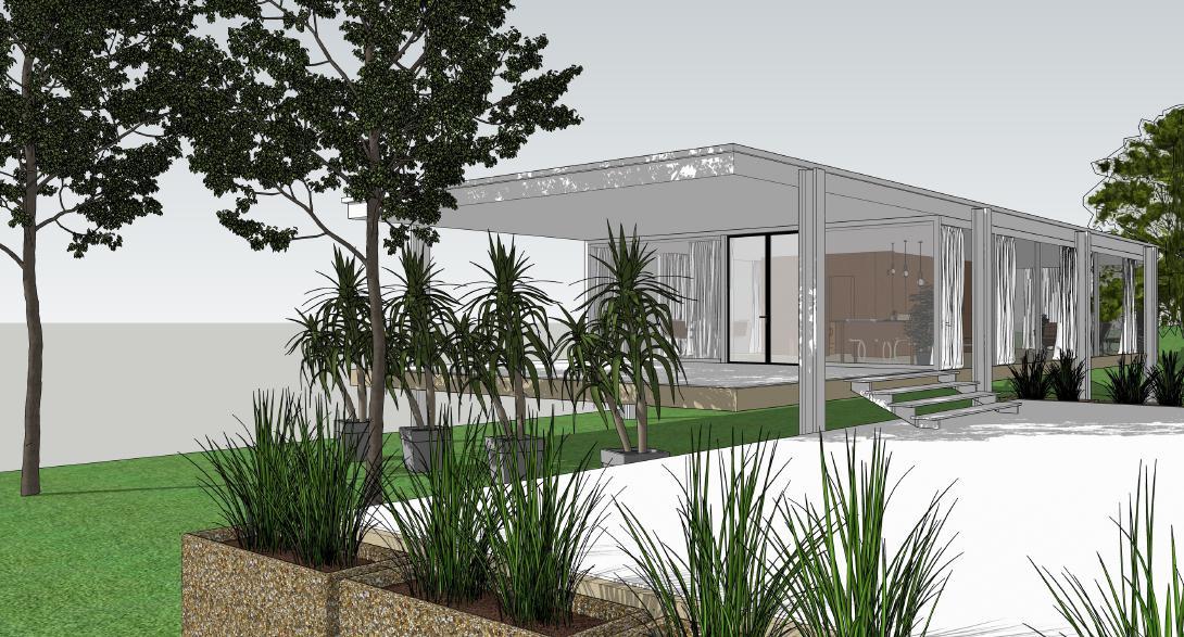 Terracotta Staircase (T1) Farnsworth House (T2) Sketchup Rendering (Sandbox, Enscape) Site Contours