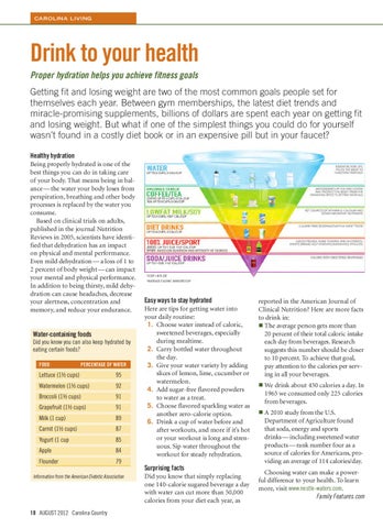 reported in the American Journal of Clinical Nutrition? Here are more facts to drink in: ■ The average person gets more than 20 percent of their total caloric intake each day from beverages. Research suggests this number should be closer to 10 percent. To achieve that goal, pay attention to the calories per serving in all your beverages. ■
