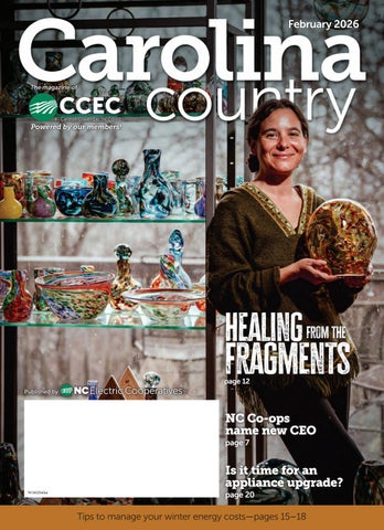 Periodicals postage paid at Raleigh, NC, and additional mailing offices. Editorial offices: 3400 Sumner Blvd., Raleigh, NC 27616-2950. Carolina Country® is a registered trademark of the North Carolina Association of Electric Cooperatives, Inc.