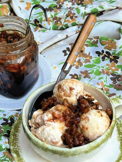 For the wet nuts topping, bring sugars, syrups and butter to a slow boil over medium heat until sugar dissolves, then reduce heat and lightly boil for 3–4 minutes. Remove from heat and stir in extract, salt and walnuts. Let cool to room temperature, then jar and store in refrigerator for up to 3 months.