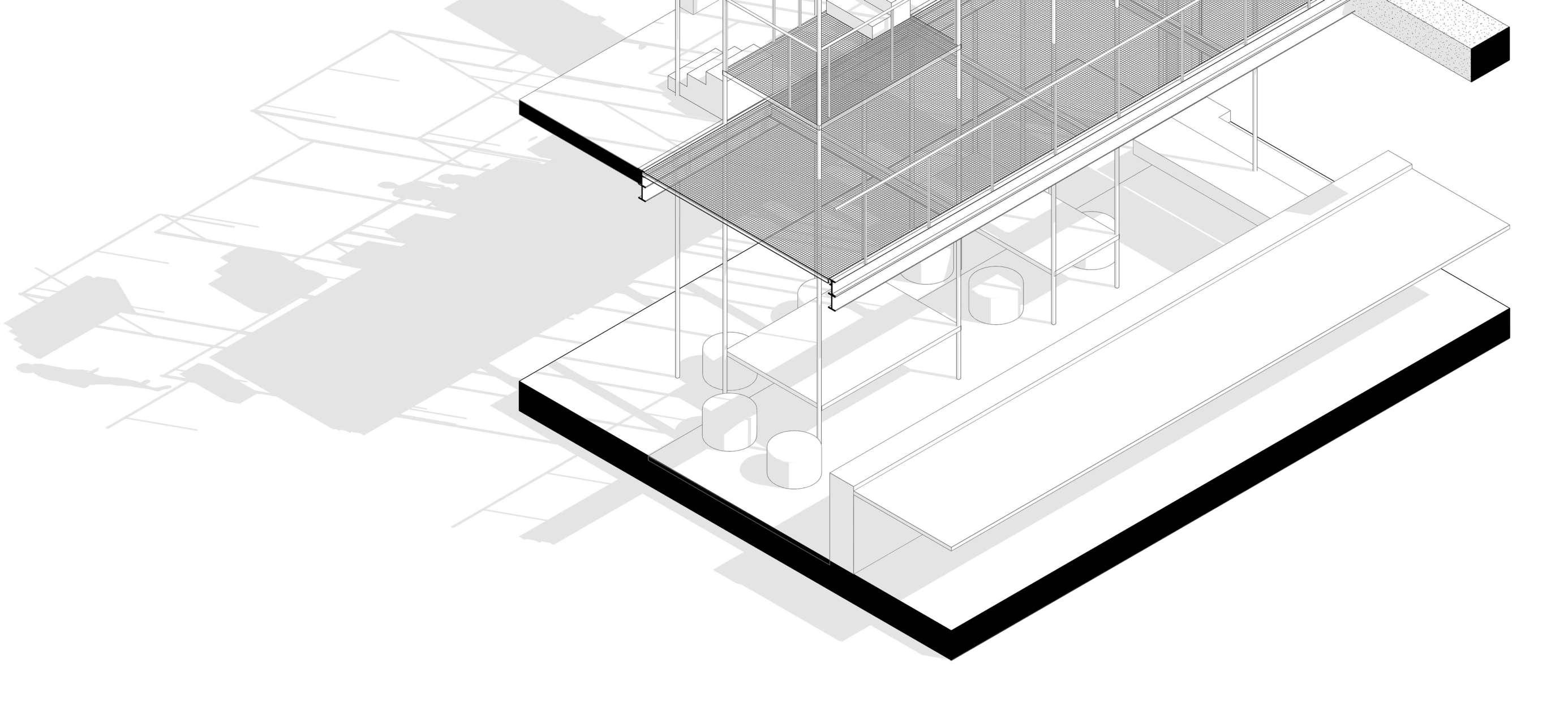AUTORA: DIRECTOR DE TESIS: LÁMINA: 17 FECHA: 25/07/2022 ESCALA: A03 TEMA: RECUPERACIÓN DE LA INFRAESTRUCTURA OBSOLETA SUBTERRÁNEA: TEATRO Y PLAZA REPÚBLICA ARQ. SEBASTIÁN CALERO CAROLINA ISABEL JURADO CARRERA UBICACIÓN: BARRIO LARRERA, CALLE ANTONIO ANTE Y AV. 10 DE AGOSTO CORTE AXONOMÉTRICO GENERAL CONTIENE: BLOQUE: