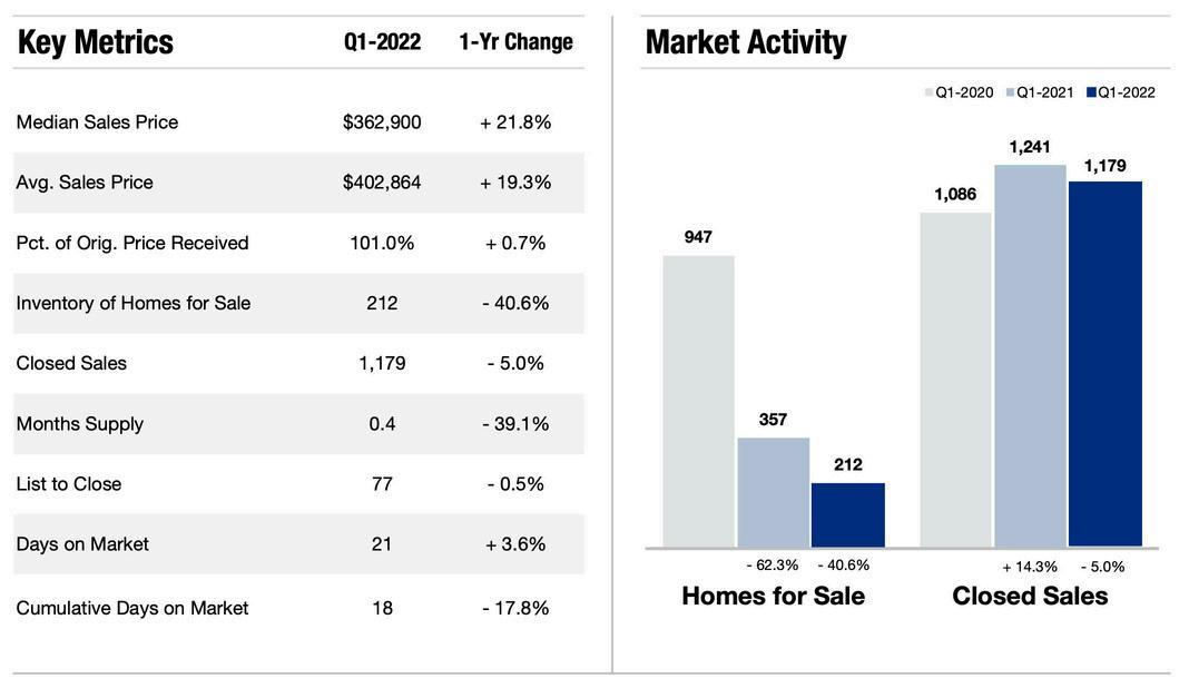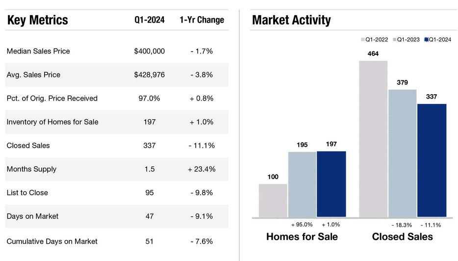 In the pastoral setting of Buncombe County, Asheville's home county, the Q1 Average Sales Price for homes was up 4.7% year-on-year. On average, homes in Buncombe County are on the market for 51 days, more than 5.8% slower than this time last year. While Buncombe County offers greater selection and opportunities for first-time buyers, its new developments and luxury communities have put upward pressure on home prices, outpacing Asheville.