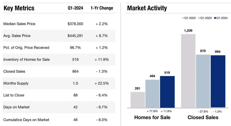Asheville continues to see Average and Median Sales Prices increase, while Month's Supply rose a considerable 36.3%. Not surprisingly, Asheville’s Closed Sales have dropped more than -1.4% on Q1 2023 figures. Expect prices to continue rising and Days on the Market to decrease during the Q2 selling season, similar to many other popular metros in North Carolina.