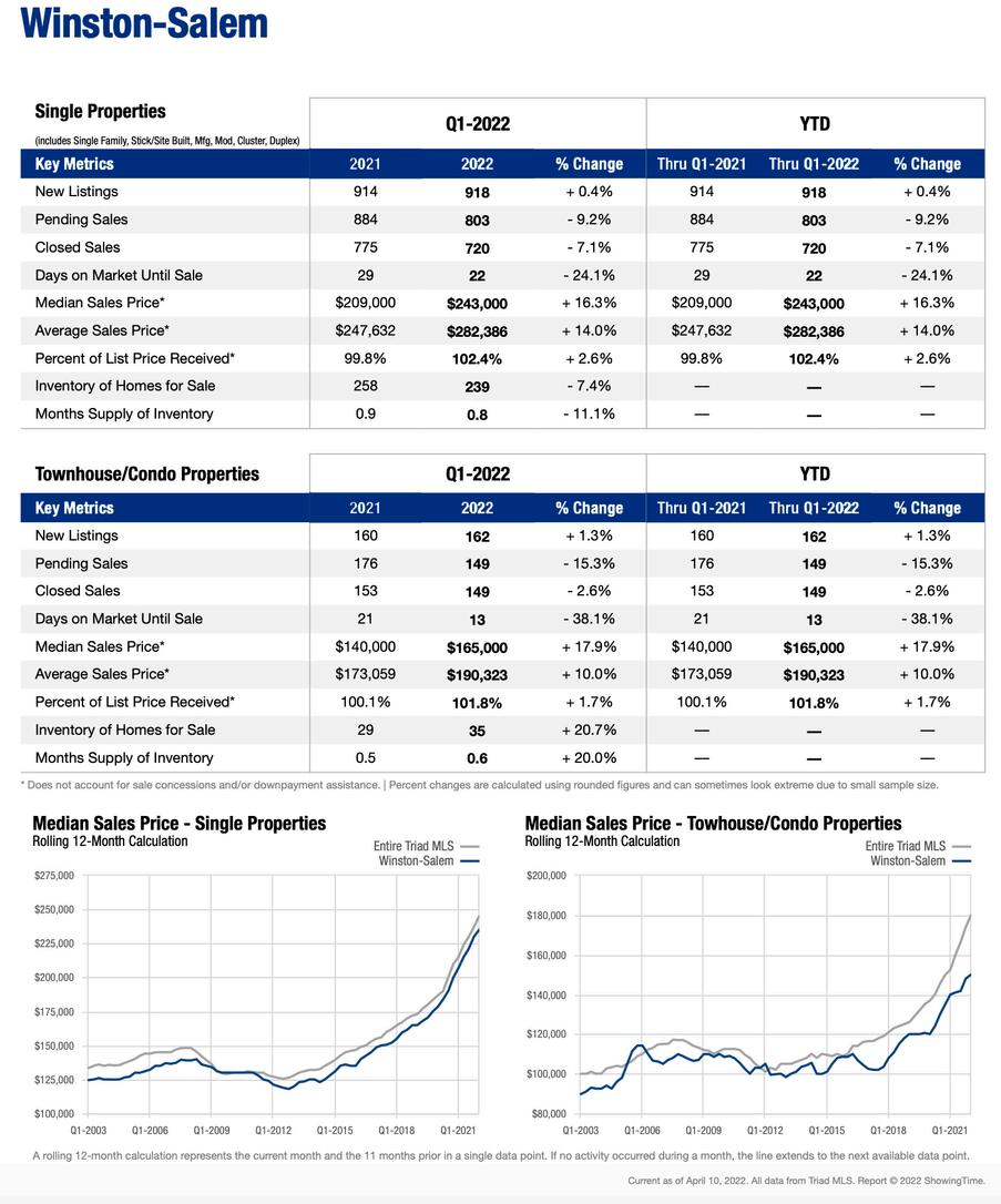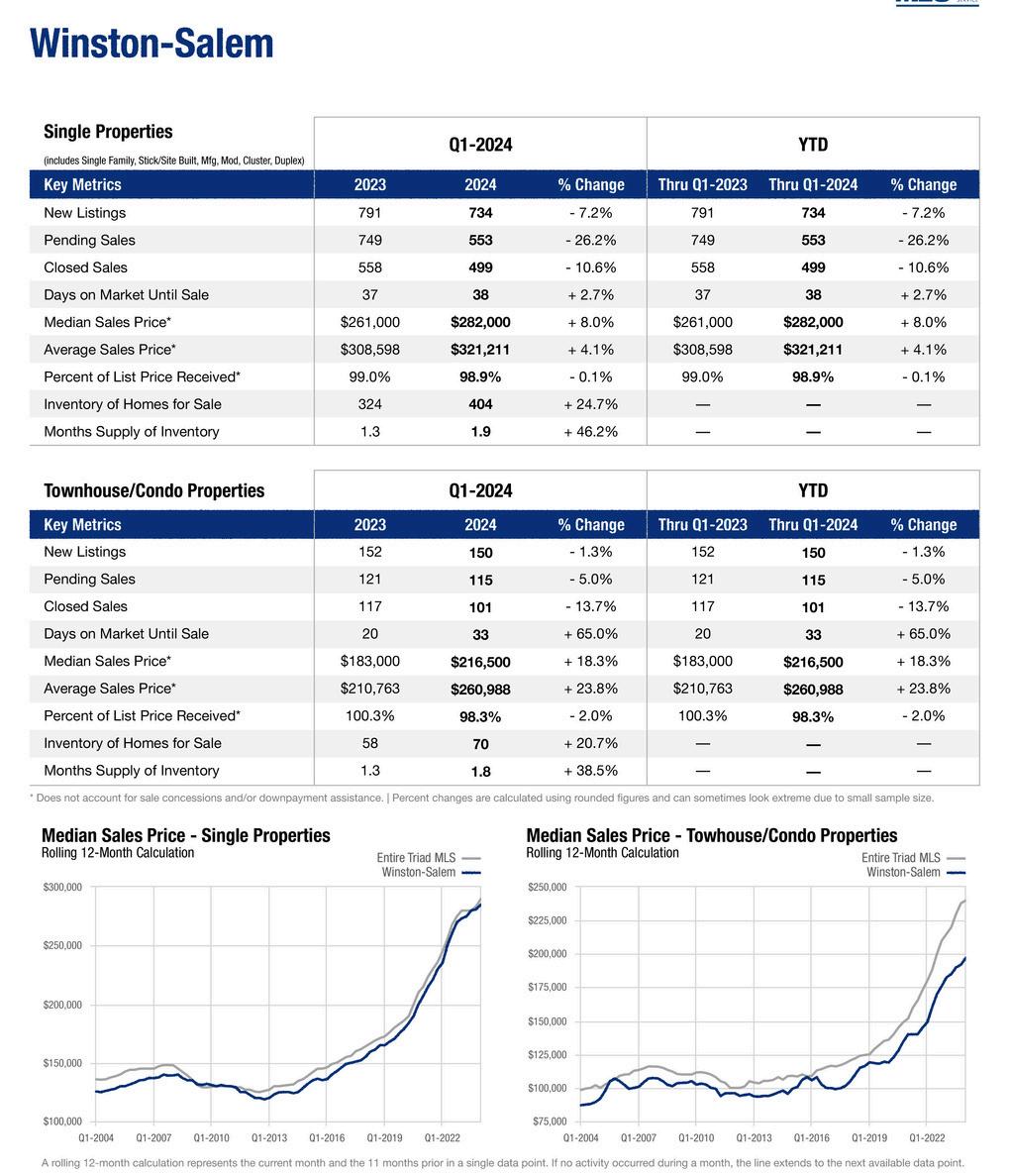 In Q1 of 2024, the Median Sales Price in Winston-Salem, NC was $282,000K, trending up 8% year-over-year. This laid-back city poised for continued growth is located in Forsyth County in the north-central part of North Carolina. The metro area lies along the Carolina Core in the heart of North Carolina, a 120+ mile stretch running between Winston-Salem, Fayetteville, Greensboro, & High Point. The Triad's continued big draw? Affordability!