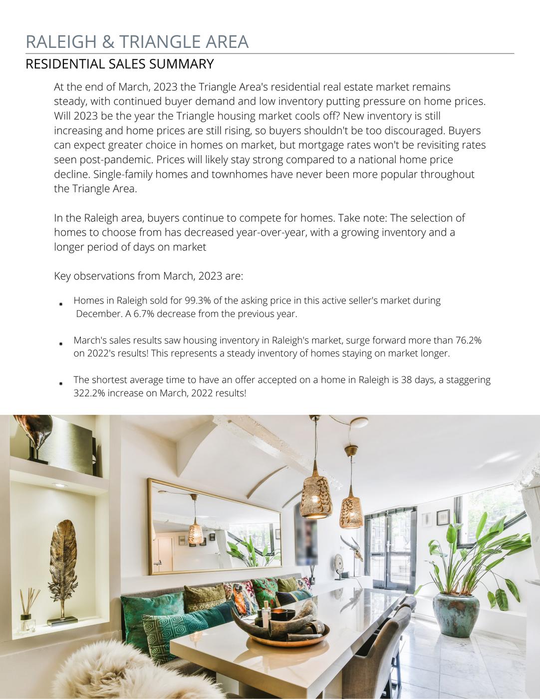THE TRIANGLE AREA | RALEIGH RESIDENTIAL SALES SUMMARY