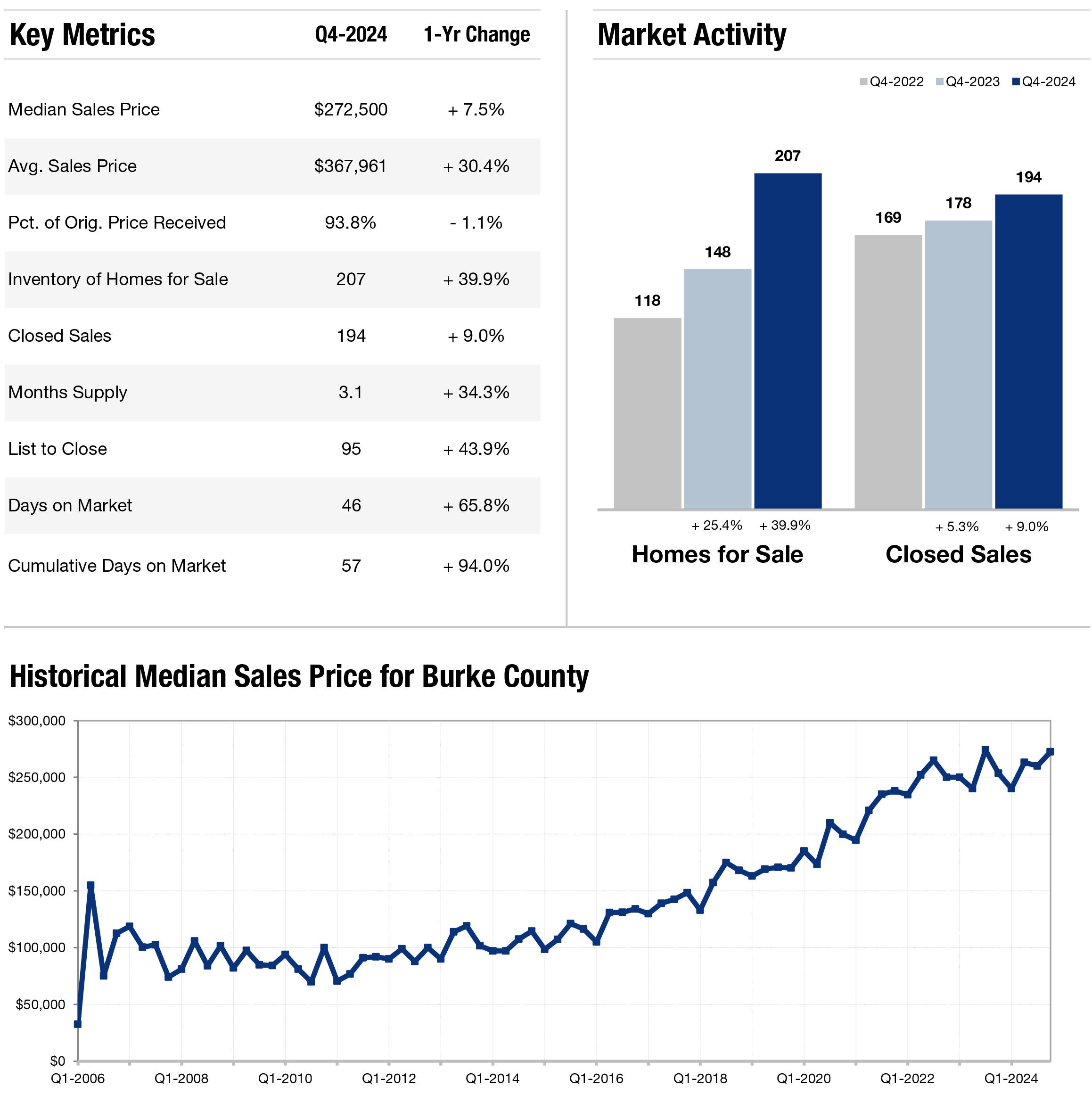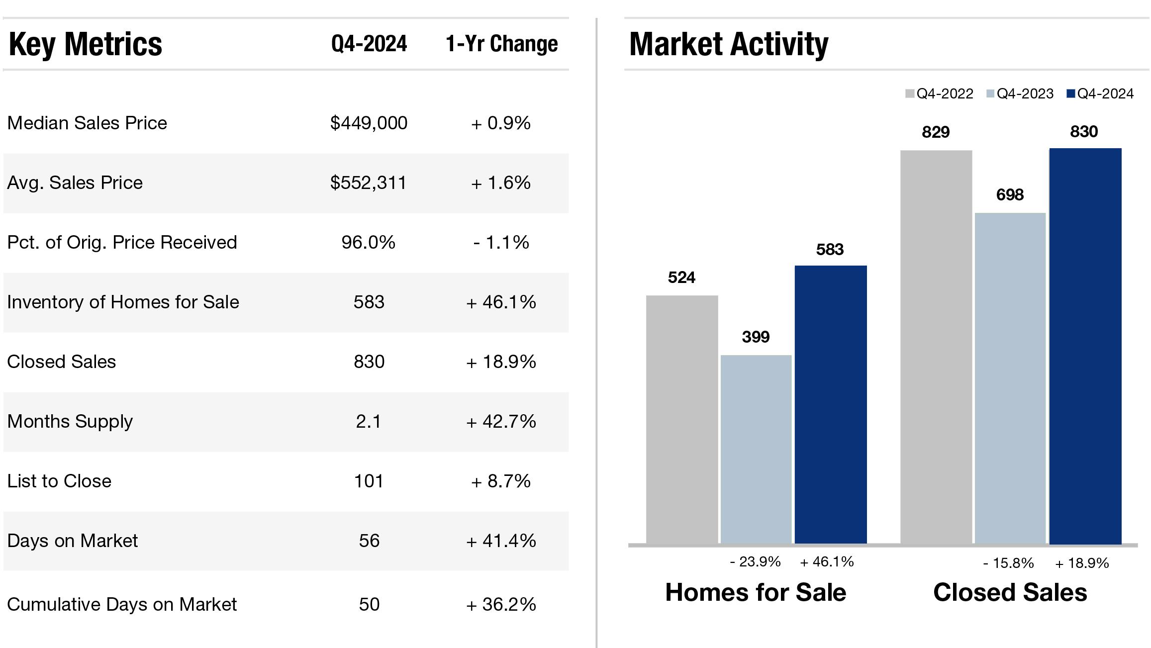 Asheville barely moved the meter on Average and Median Sales Price increases, while Month's Supply rose a considerable 24 9% Not surprisingly, Asheville’s Closed Sales have dropped more than 19% on Q4 2023 figures Expect prices to stabilize through a recovery-focused 2025 and watch for an improvement on Days on the Market