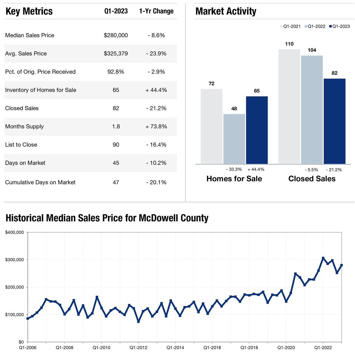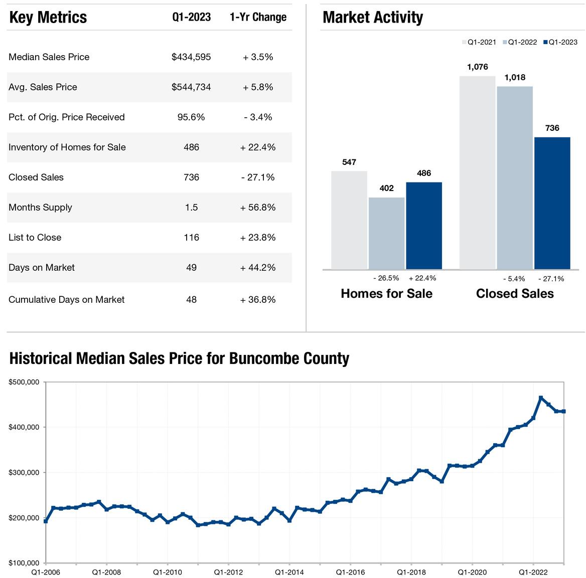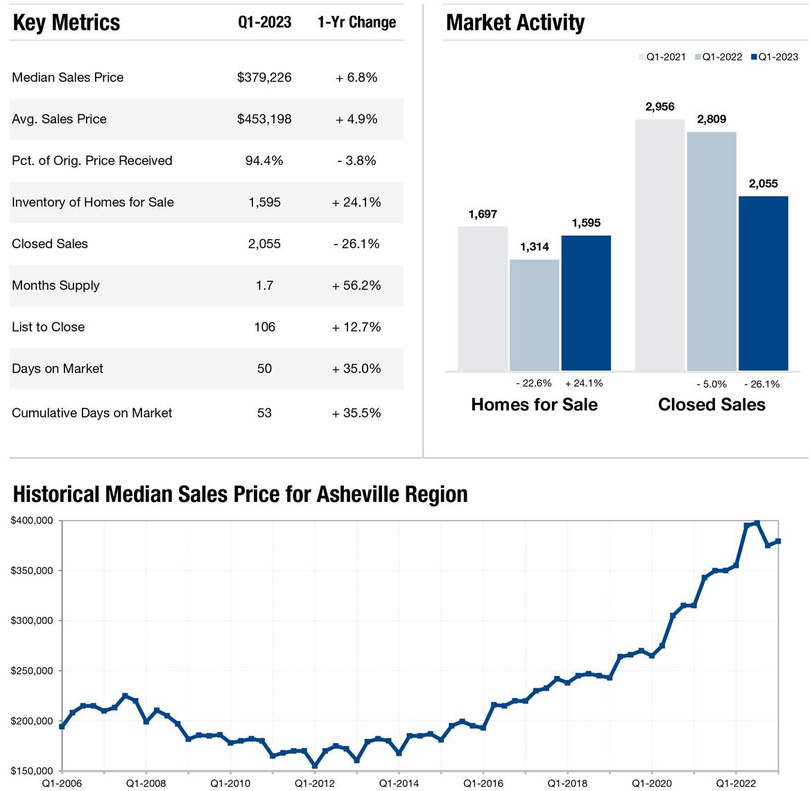 Asheville continues to see Average and Median Sales Prices increase with Month's Supply rising 56.2%. With such a low inventory, it's no surprise that Closed Sales have dropped more than 26.1% on Q1 2022 figures. Expect more of the same in Q2 2023, with prices continuing to rise and both inventory and Days on Market continuing to increase, similar to other NC metro areas.