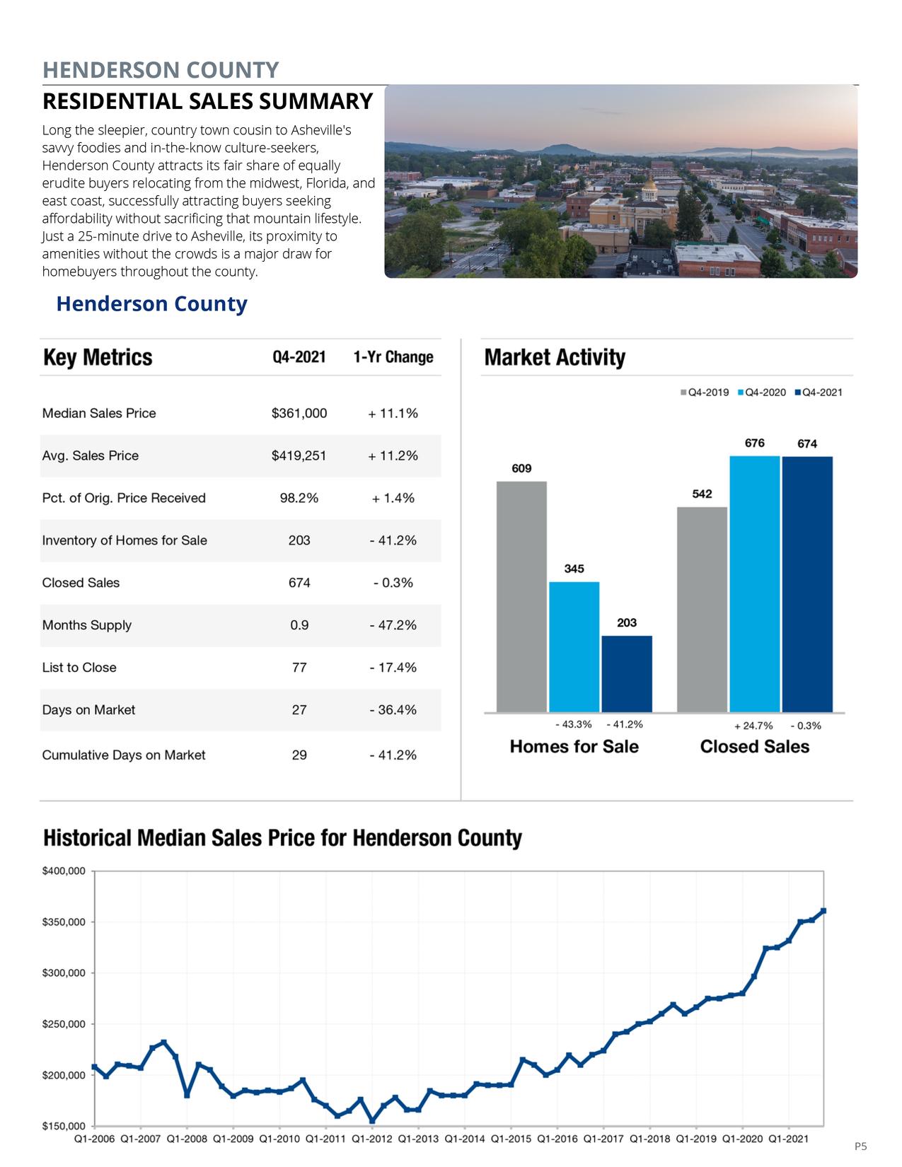 In the pastoral setting of Buncombe County, Asheville's home county, the Q1 Average Sales Price for homes was up 5.8% year-on-year. On average, homes in Buncombe County are on the market for 49 days, more than 44.2% slower than this time last year. While Buncombe County offers greater selection and opportunities for first-time buyers, its new developments and luxury communities have put upward pressure on home prices, outpacing Asheville.