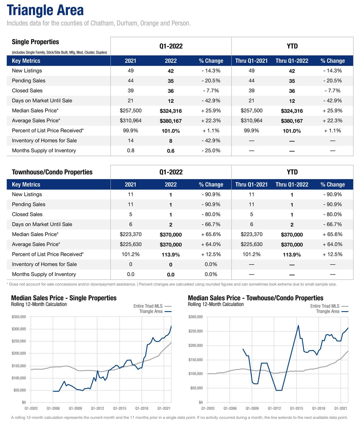 Triangle Area real estate markets remain active, with the areas of Durham and Wake County showing particular demand That's still positive news for sellers, for now For buyers, rising inventory and longer days on market will add more balance to this highly competitive market.