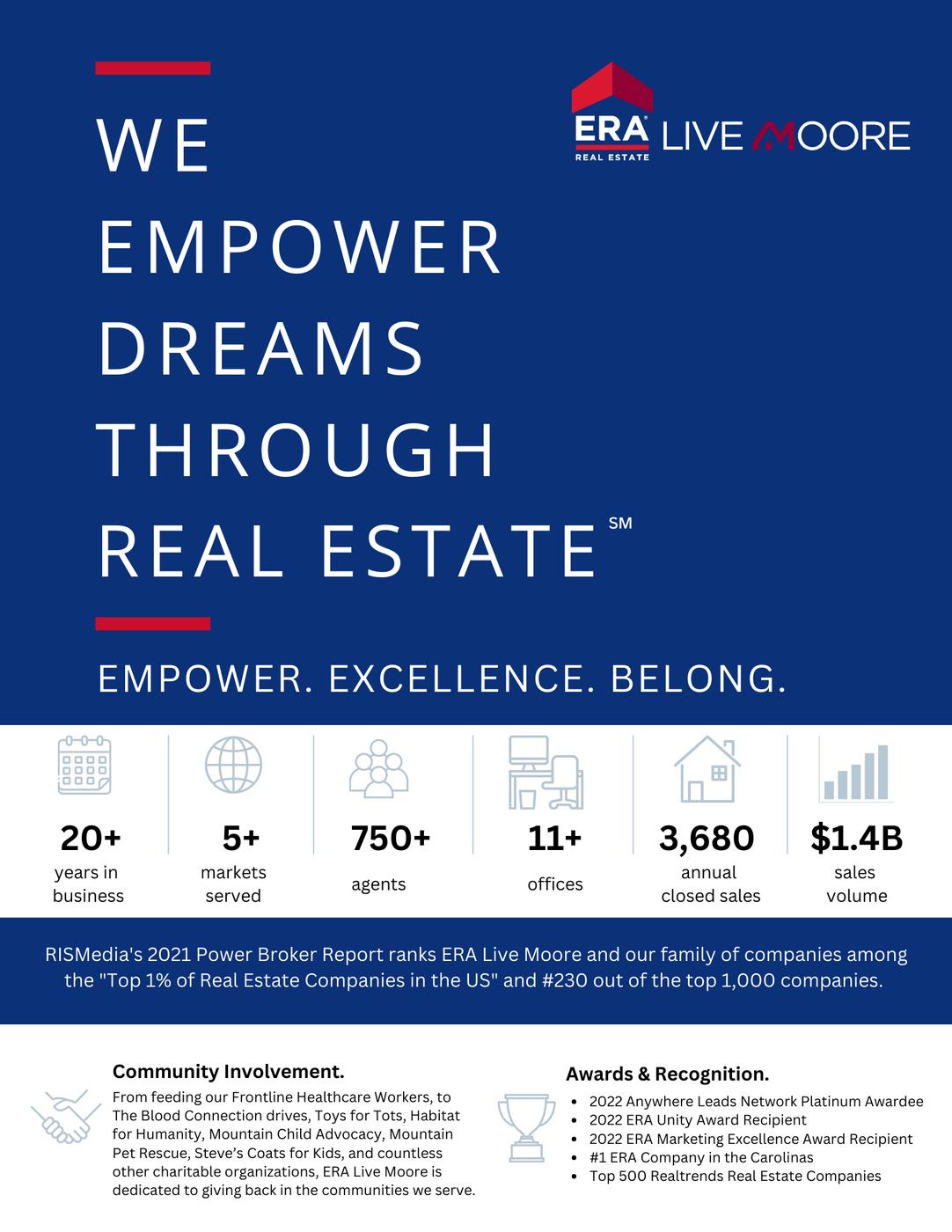 Information is deemed reliable but not guaranteed. Consult your ERA Live Moore Sales Associate | Charlotte Regional REALTOR® Association for more information.