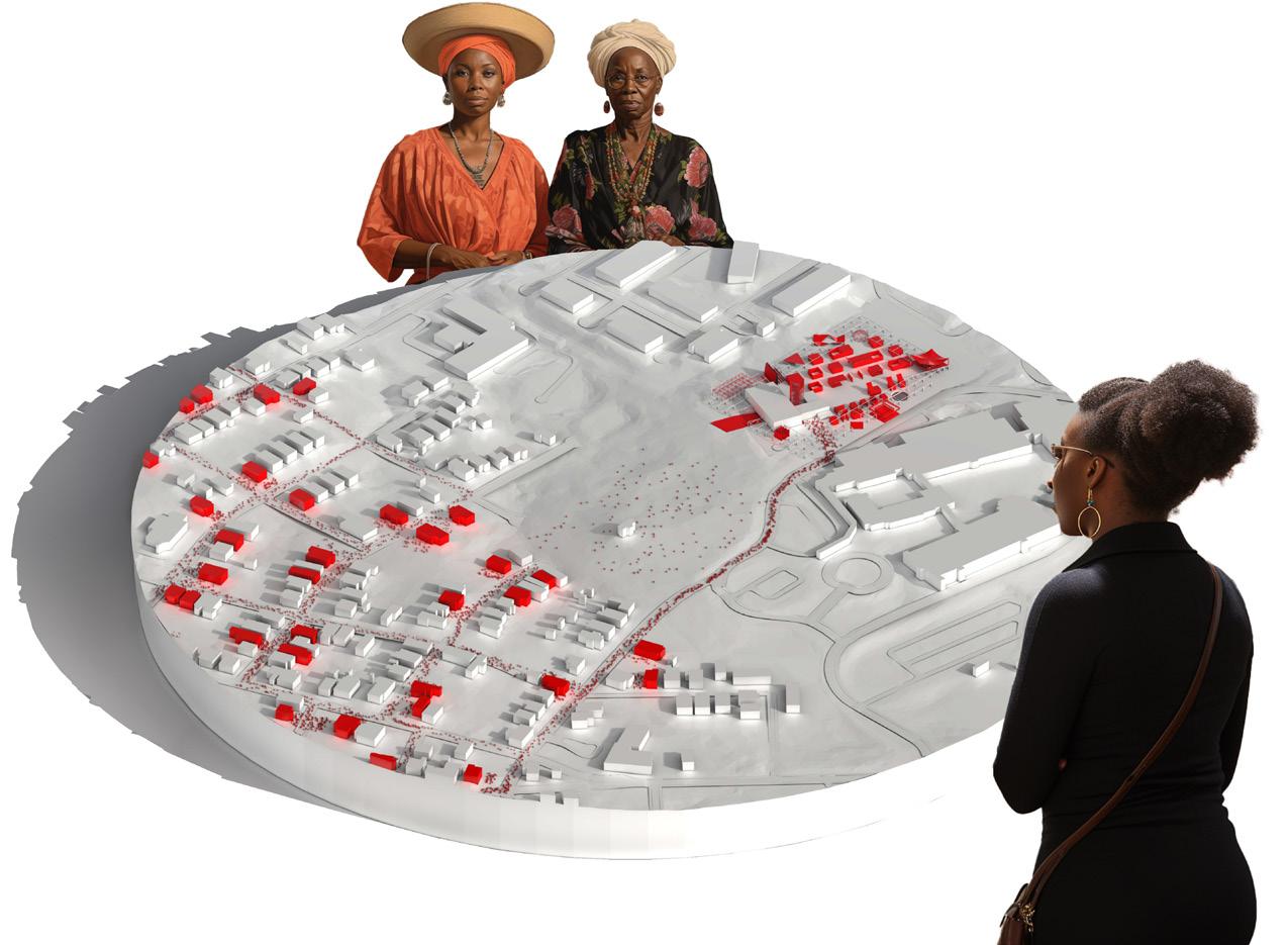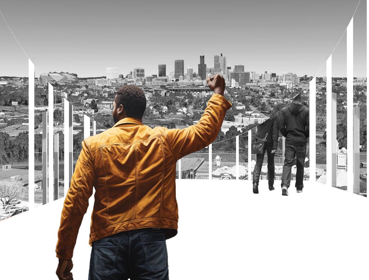 In “A Speculation On Third Space,” Rayshad Dorsey presents a speculative proposal centered around the ideology of Third Space as a potential strategy to address gentrification in the South Atlanta community. Using ideas of Third Space and AI images, this project speculates a middle ground that looks at a space for social inclusion, a space for both existing community members and newcomers.