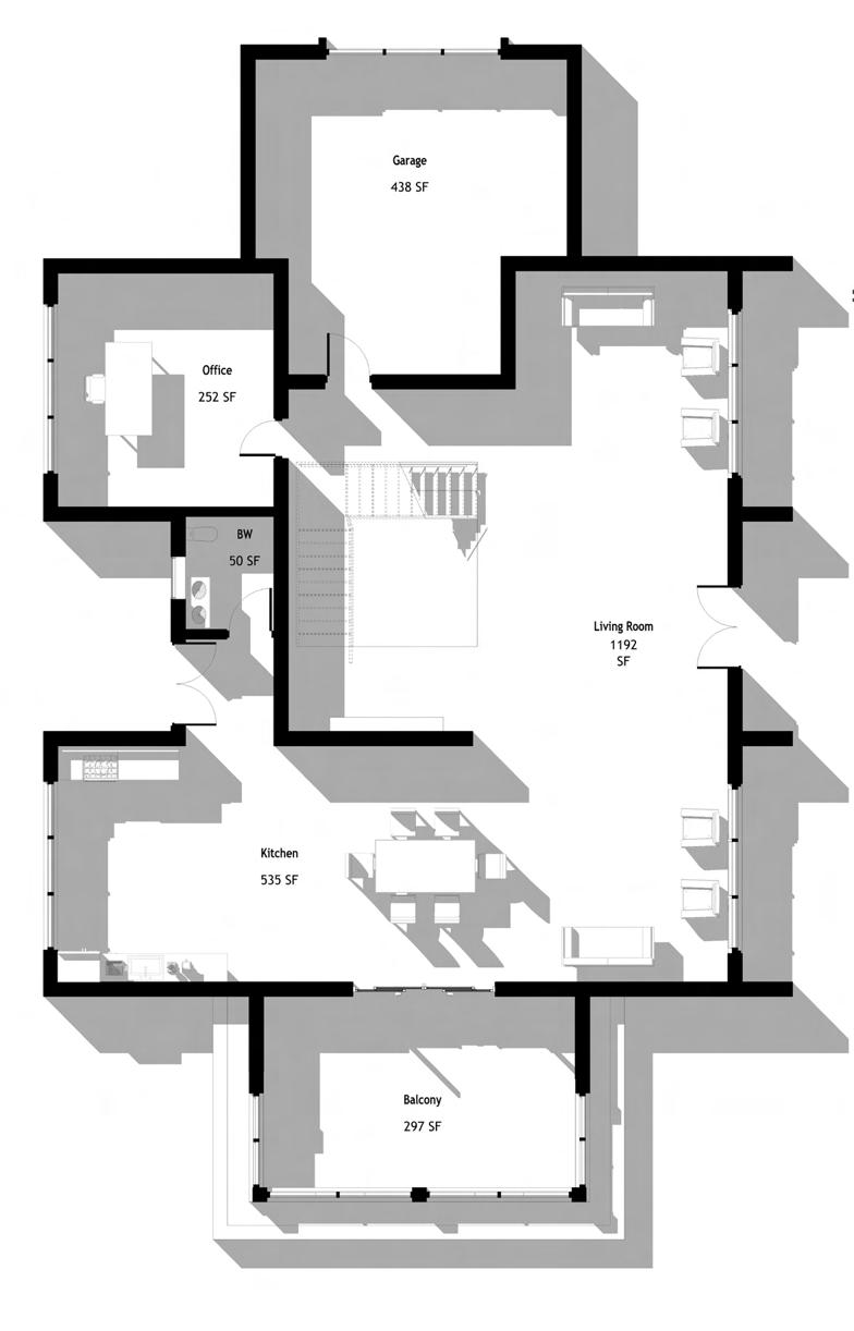 1. Volume. Creating volume necessary to fit the first floor of the program.