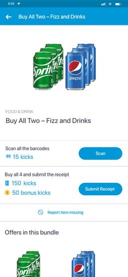 For 3 days in April, users were awarded kicks for scanning and purchasing any Snack/Candy, Beverage, or Alcoholic Beverage at 7-11.