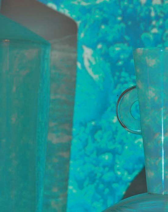 rocky promontory and part of it is built on an old customs trail, which is now walled and has a big glass window that the sea crashes against. However, the sea rises up into this space through a special drainage system, which is fascinating to behold because it sweeps in like a guest. Villa and sea live together in perpetual motion. That’s why I set out to create an installation with waves of glass, La Mer Intérieure, featuring different forms, textures and dimensions reflecting this remarkable encounter. All the installations are based on this same approach, drawing on different archetypes. The sea here, the light and sun there. But also the vegetation, and of course the amphoras, which I feel capture the spirit of the Mediterranean. I came up with the idea of creating a series of amphoras in shades of white—opaque, translucent and transparent— onto which I could project moving images. I wanted to provoke introspection, to immerse the onlooker in the experience and take them on a journey inward. By projecting images of the shifting sea—calm, stormy, choppy and raging— along with images of the abyssal depths and the sky, I was looking to create a symbolic journey. The shadow of the amphoras is clearly present and makes a real impression. It’s anthropomorphic and reminiscent of Cycladic art. It’s the positive influence of the past. It’s our legacy.