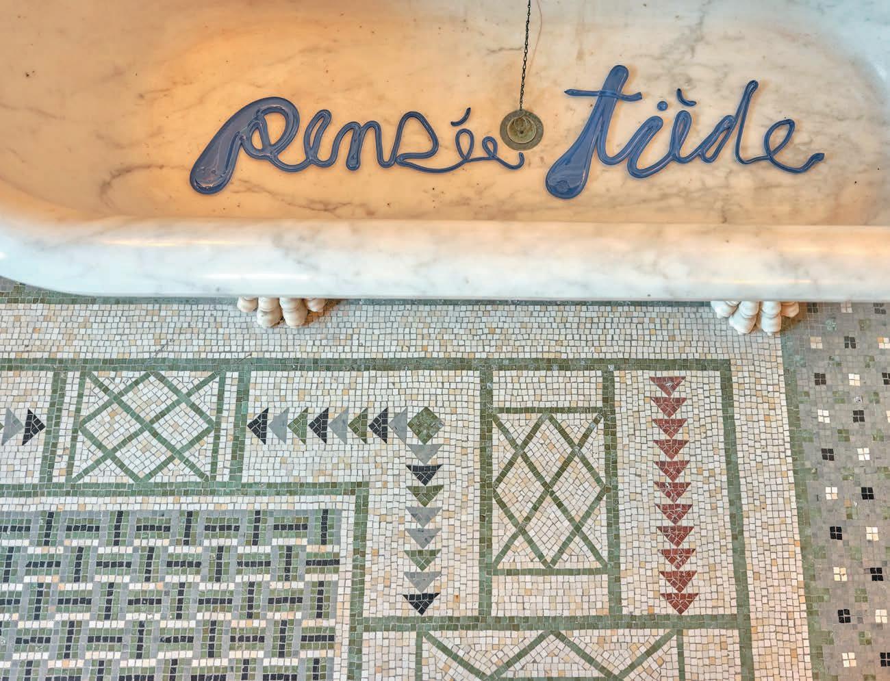 Elsewhere, amid an enchanting peristyle, bathed in dazzling light, the simplicity of the reeds urges deference, since only understatement, humility and measure can coexist with the dream of Théodore Reinach, the founder of Villa Kérylos. And even if Pierini takes risks in using neon lights and pieces that