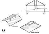 Thefirstroofismetallicandissuspendedby wooden trusses. It acts as the primary protection against heat, blocking most of the sunlightandhelpingtoreducethetemperature inside the classrooms. The second roof, with a vaulted shape, is supported by metal beams. This serves as a second line of defense against solar heat and also enhances the room's acoustics. The vaults are positioned with appropriate spacing between them, promoting effective ventilation and allowing the exit of heatedair.