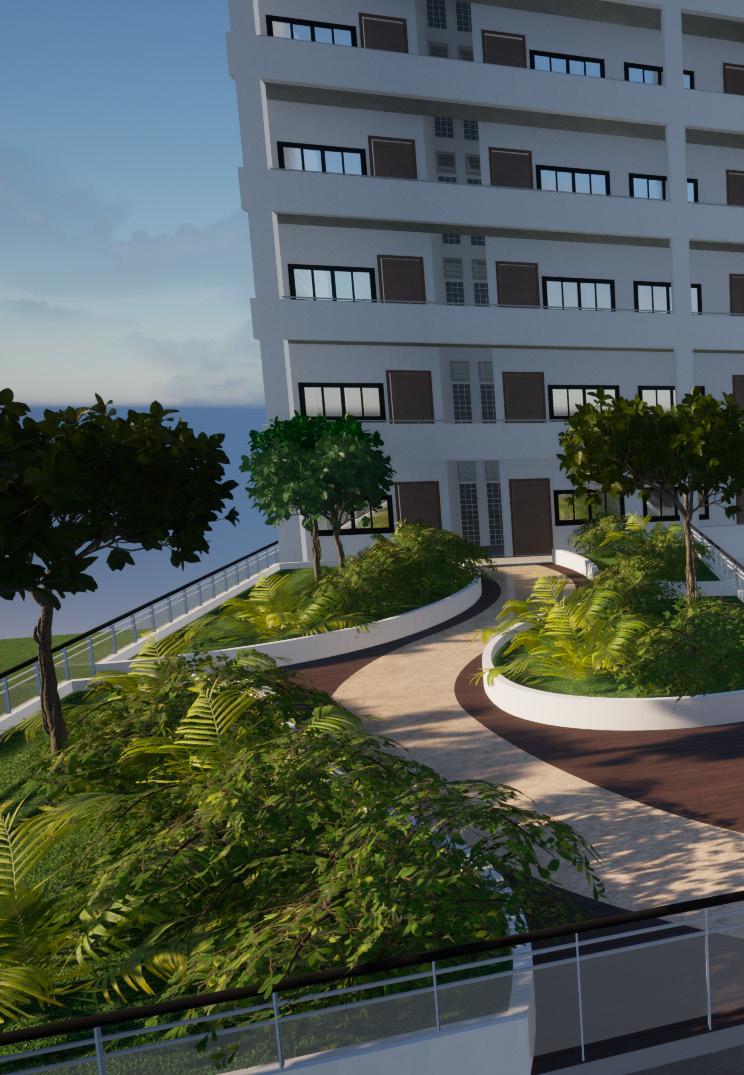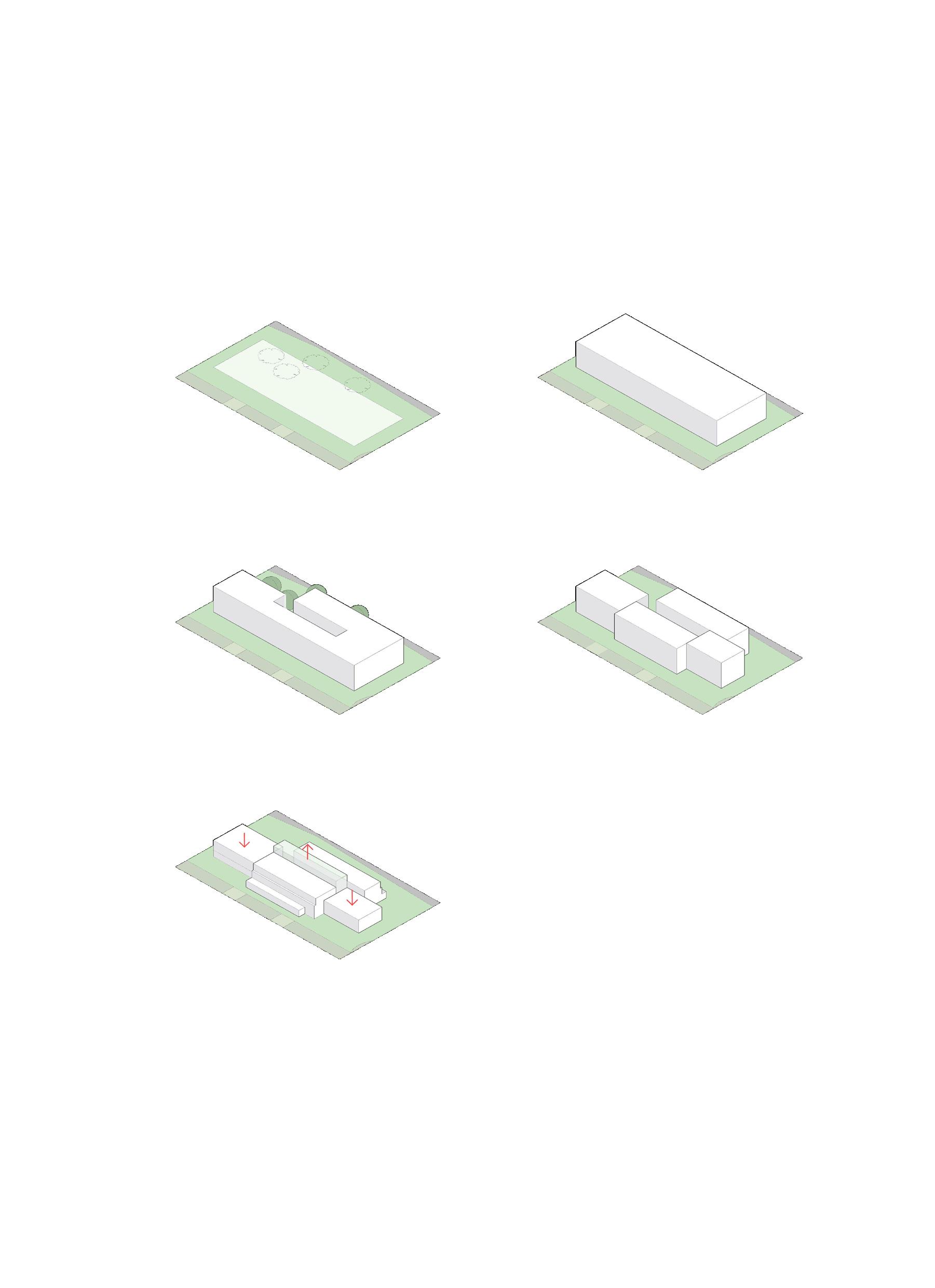 arranged to create different facade iterations as they stick out of the main massing. This iteration is used for the west residential block ferent pattern and is used for the south residential block