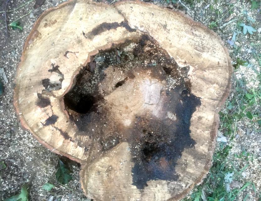 This stump of a tree looked healthy enough from the outside, but a trained eye can see the telltale signs of inner decay.