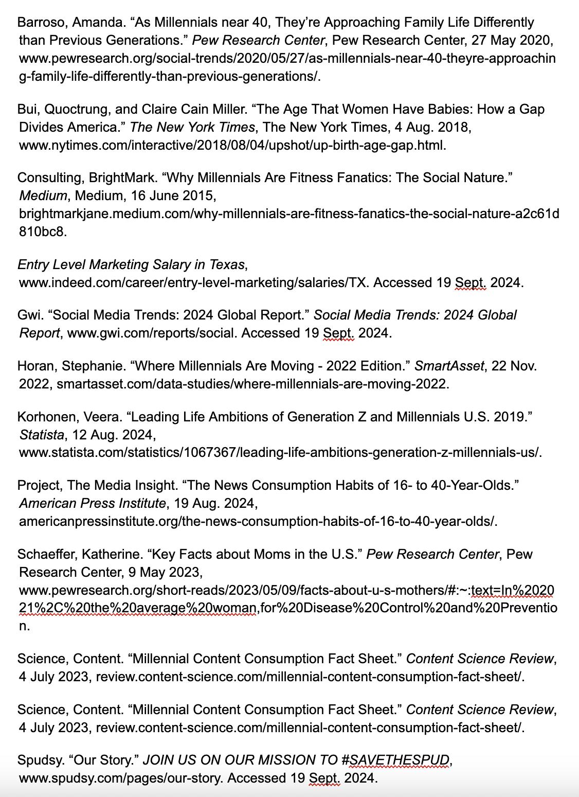 Millennials, defined as individuals born between 1981 and 1996, are currently aged 28 to 43. The target age range for Spudsy’s audience, 27-35, falls within this generational group. This cohort is characterized by a strong emphasis on health and wellness, a preference for convenience, and a desire for experiences over material possessions. As they navigate busy professional and personal lives, millennials in this age group are looking for products that align with their values and lifestyles.