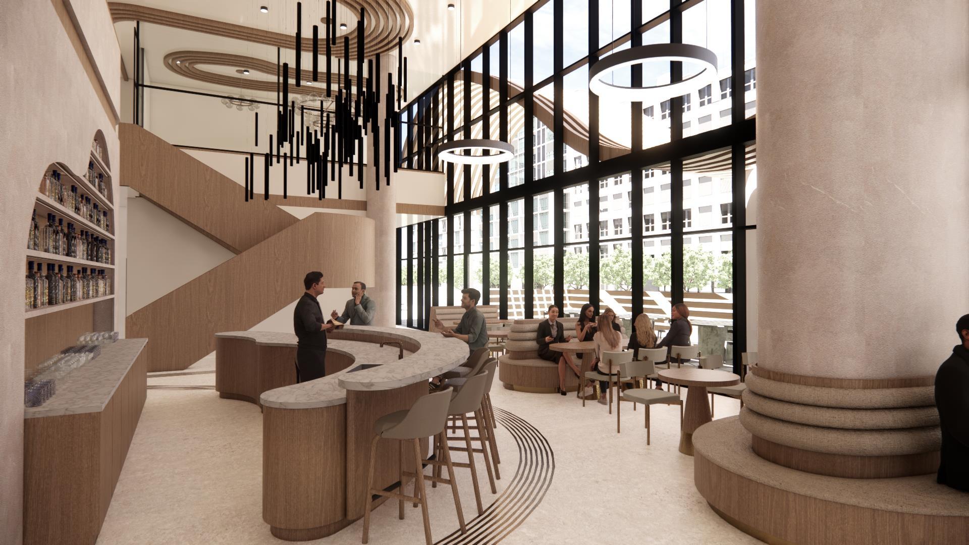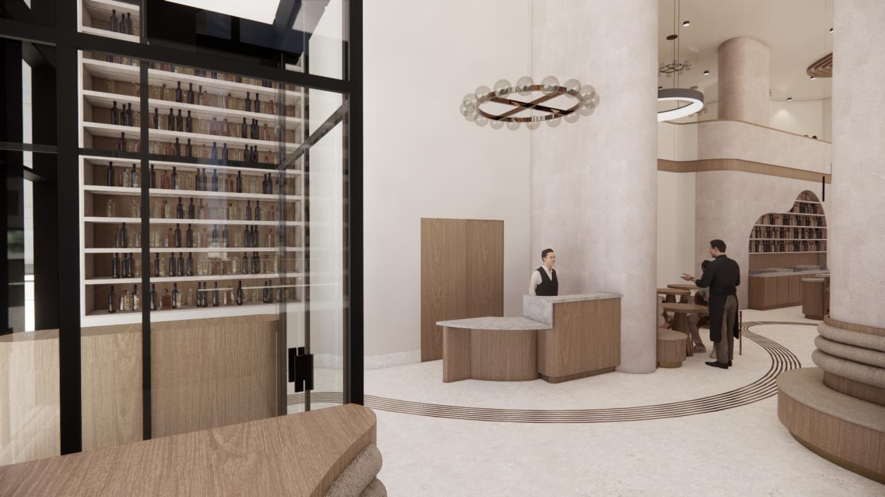 Natural materials such as wood and limestone cover the interior. The 12 Apostles, formed from eroded limestone, are mimicked by covering the structural columns in limestone of similar forms
