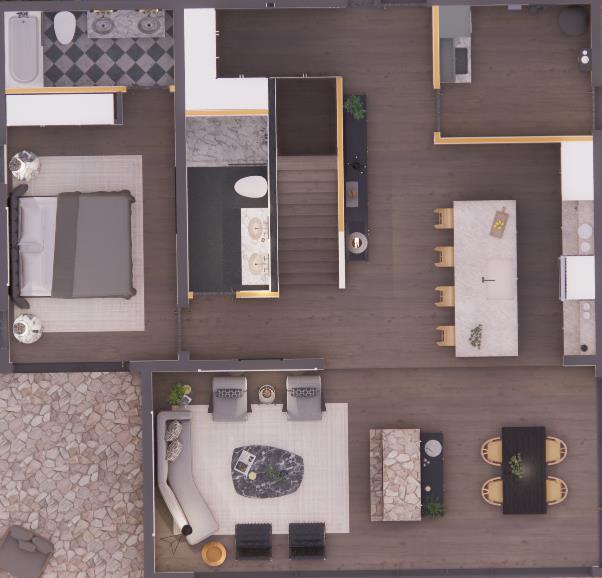 Being one with nature. Not recognizing where nature ends and the built environment begins This cottage takes the form of the surrounding pine, rooted in the linear fireplace acting as the trunk.