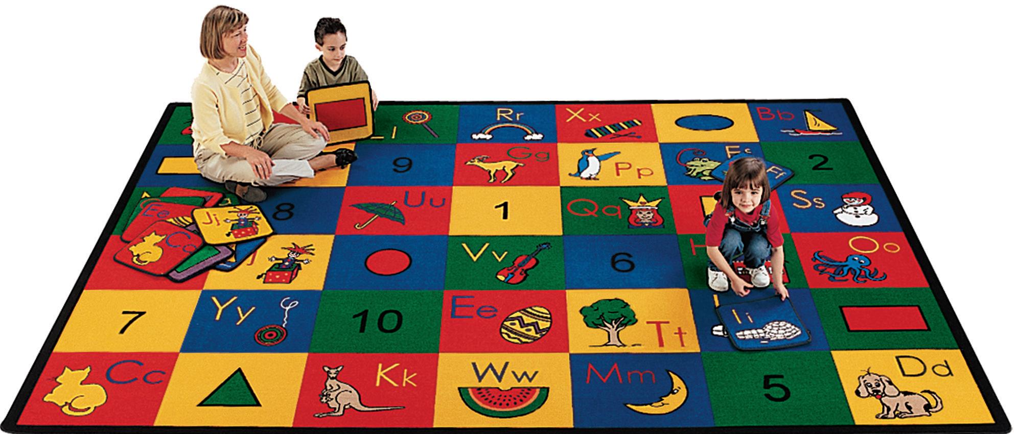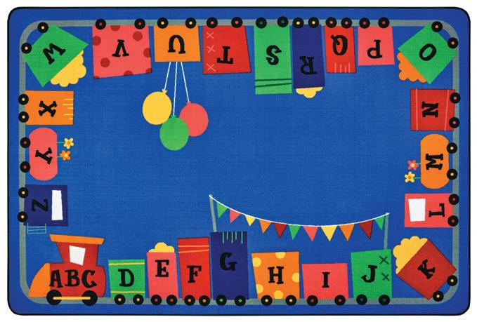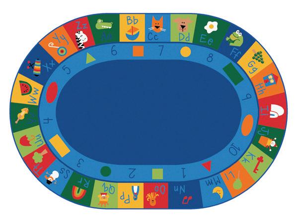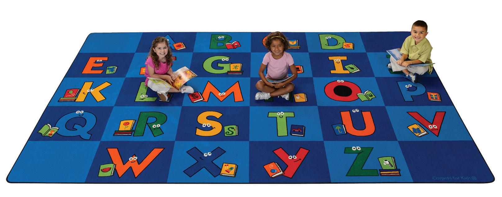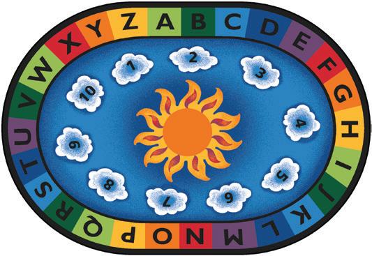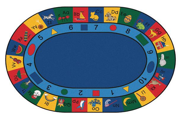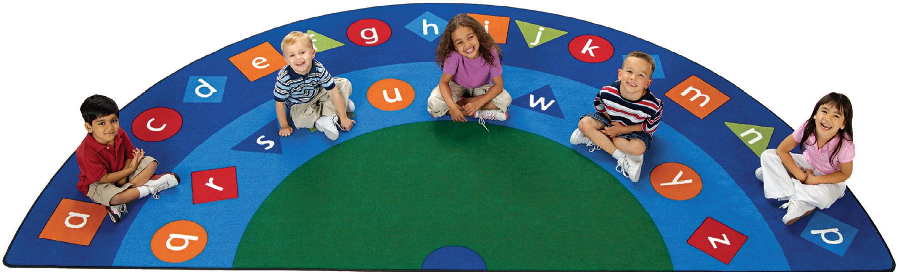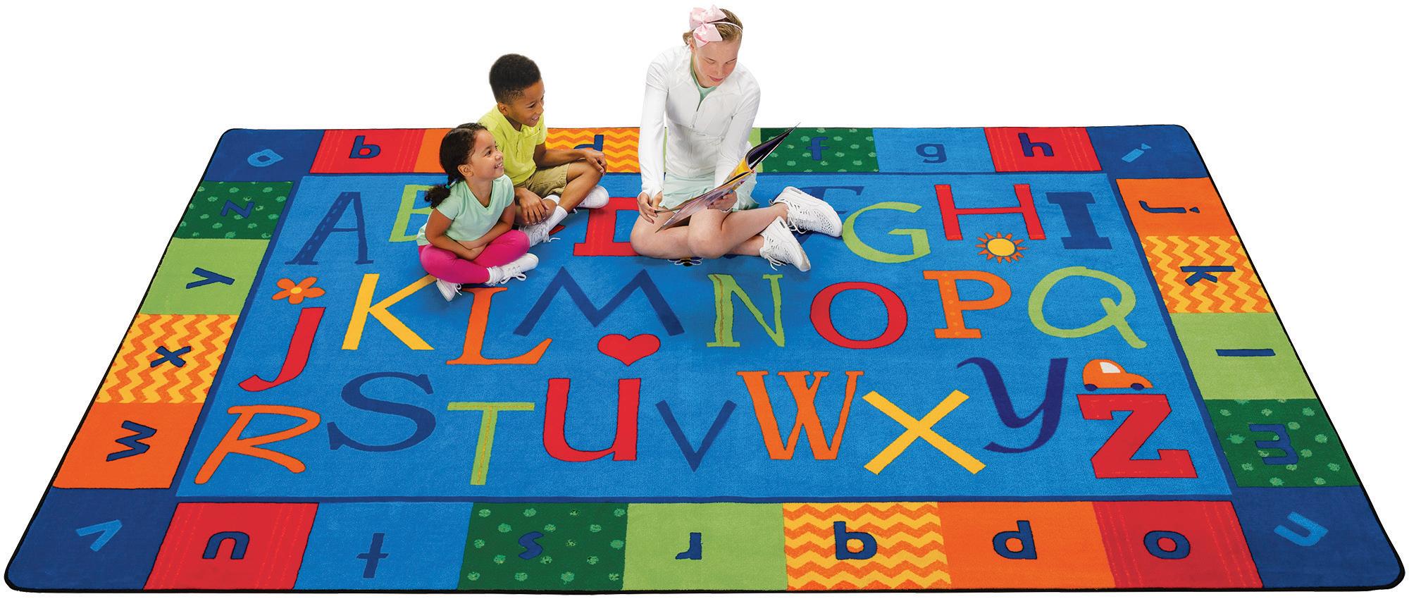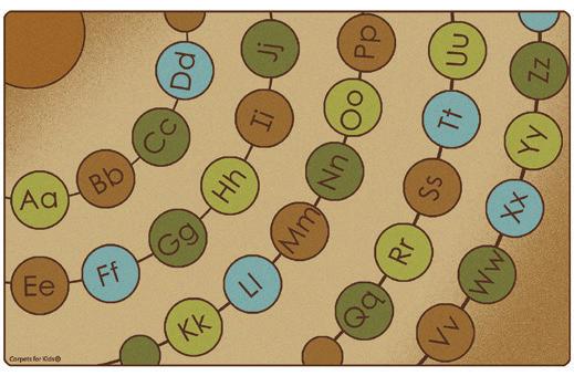 This rug combines classroom seating, literacy, and beautiful design all in one. With 26 large spaces for children and another for a teacher, this rug gives ample room for wiggling and a staggered layout makes this rug both attractive and functional.
