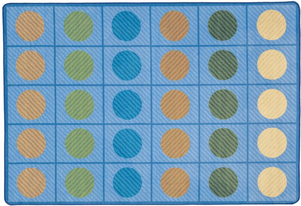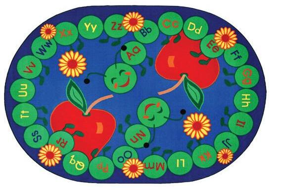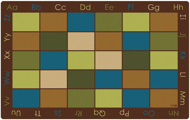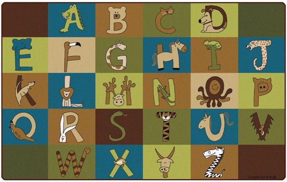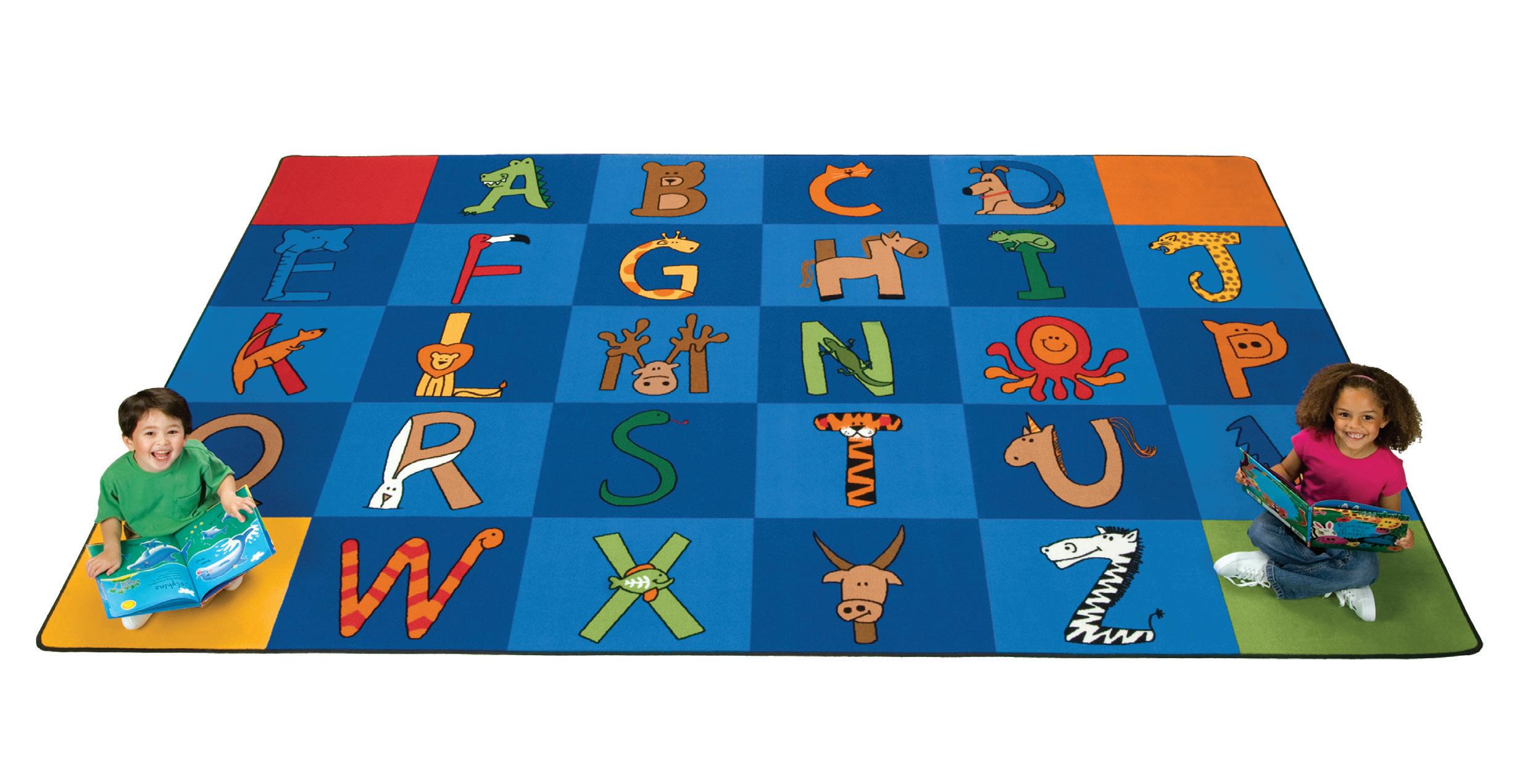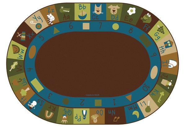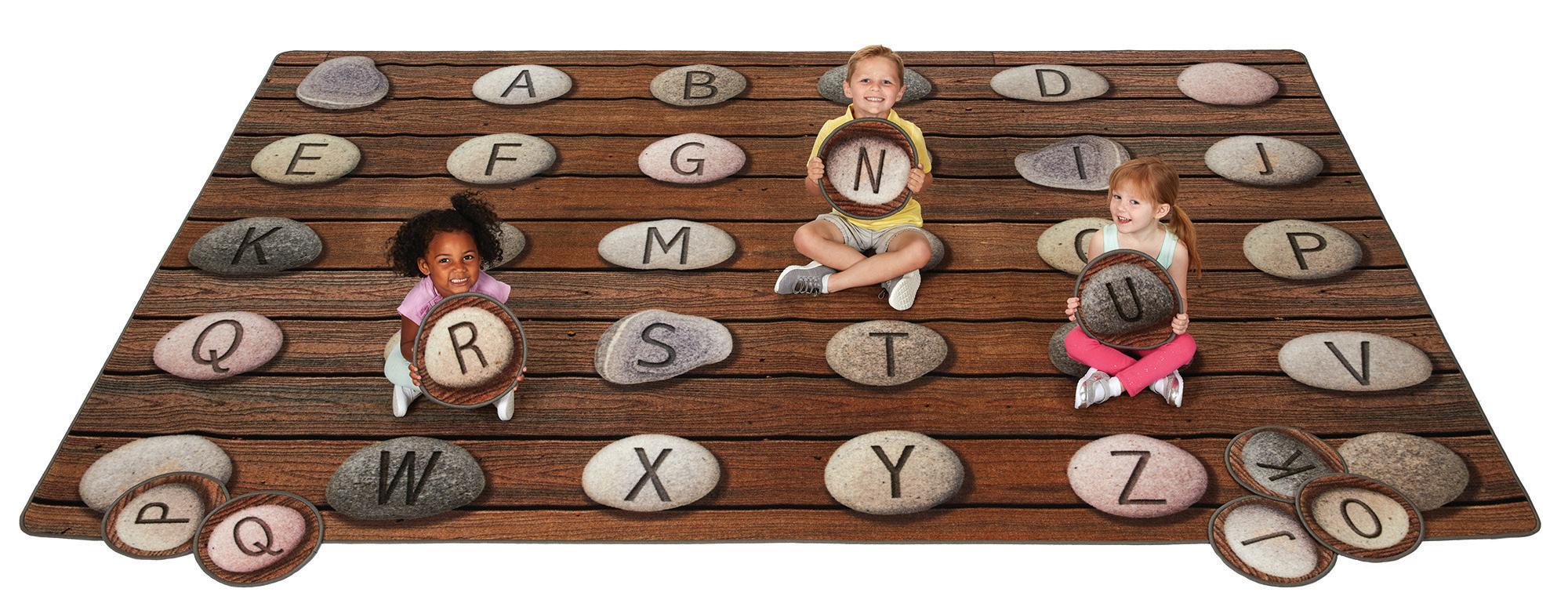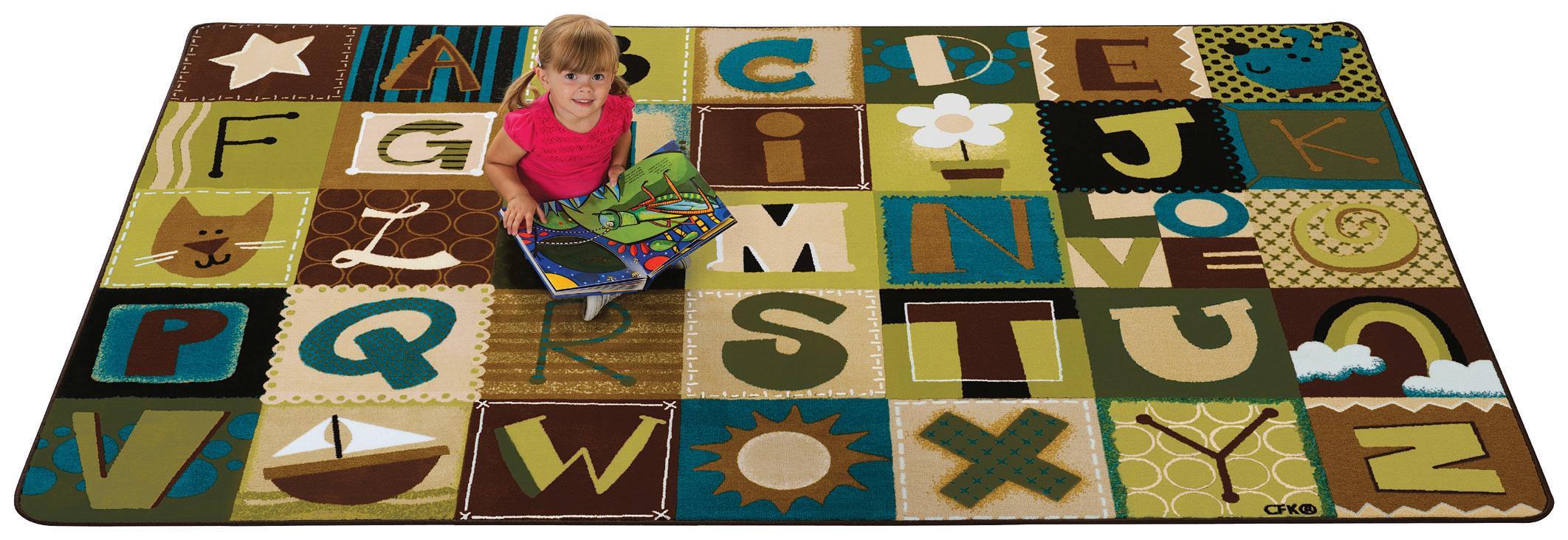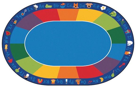 This rug combines classroom seating, literacy, and beautiful design all in one. With 26 large spaces for children and another for a teacher, this rug gives ample room for wiggling and a staggered layout makes this rug both attractive and functional.