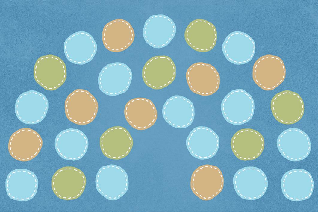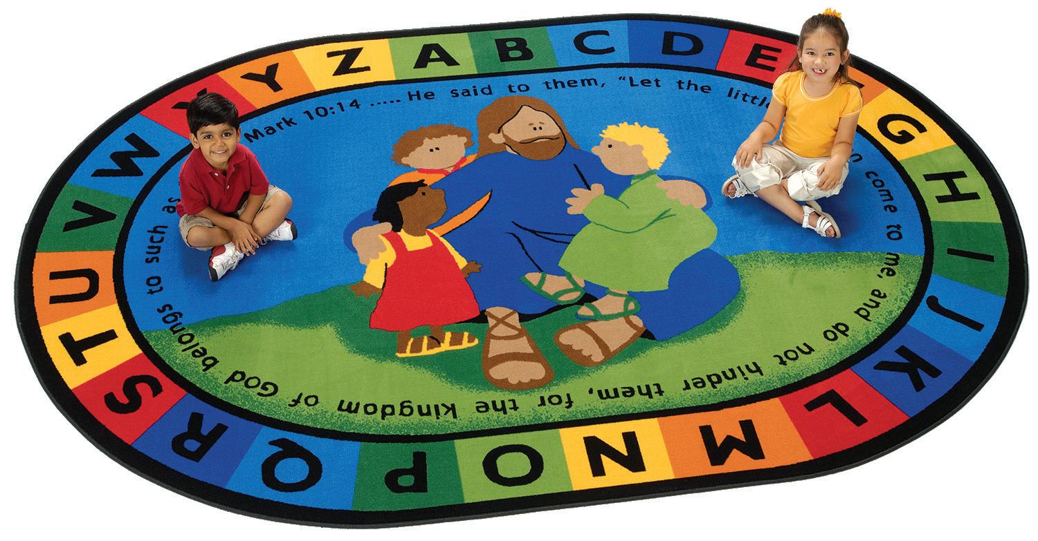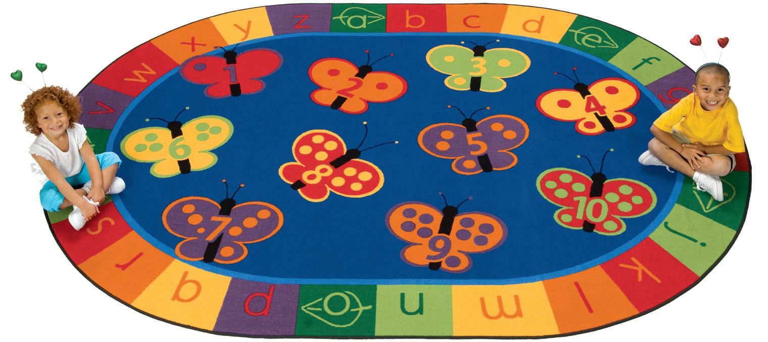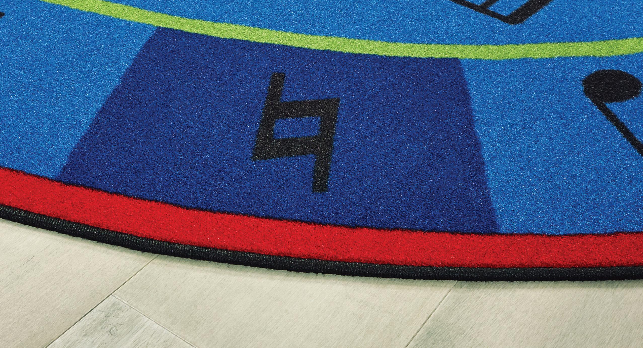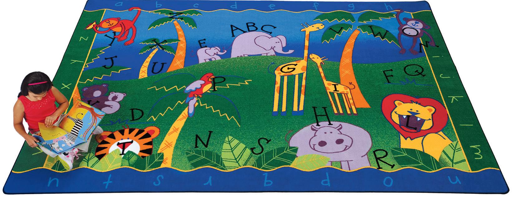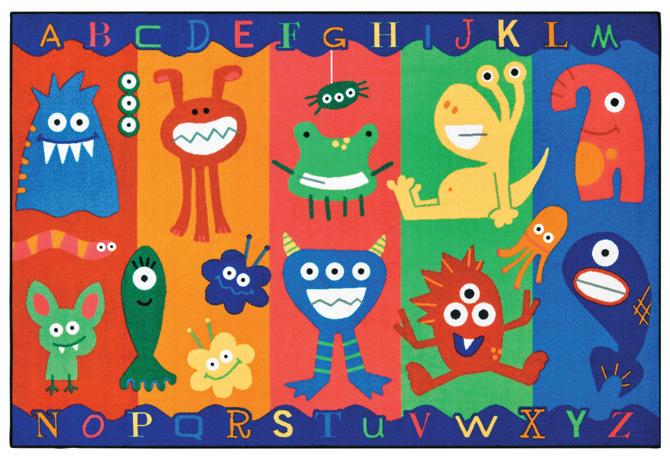 This rug combines classroom seating, literacy, and beautiful design all in one. With 26 large spaces for children and another for a teacher, this rug gives ample room for wiggling and a staggered layout makes this rug both attractive and functional.