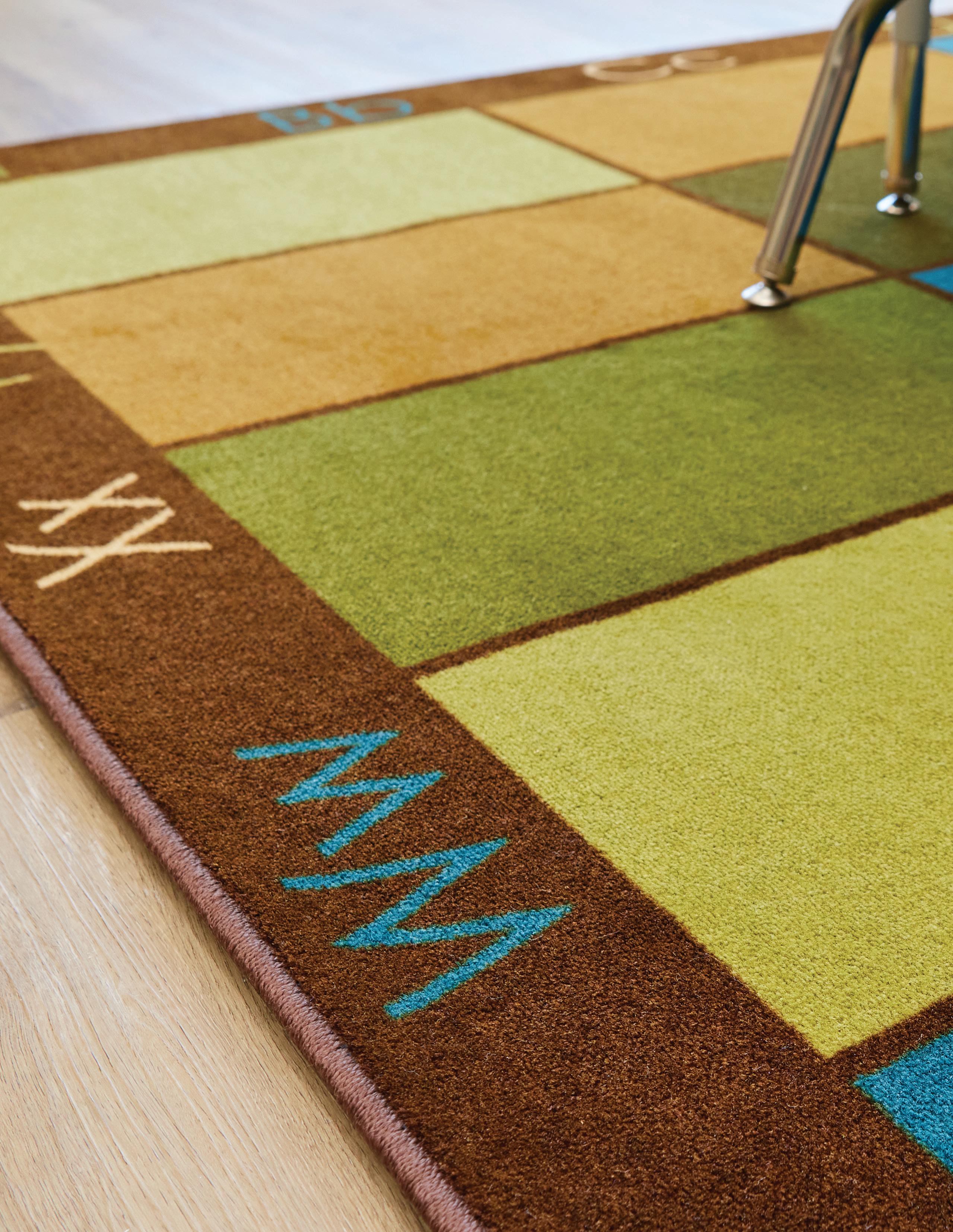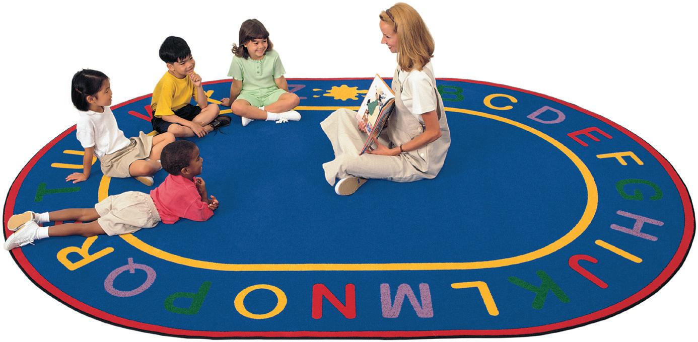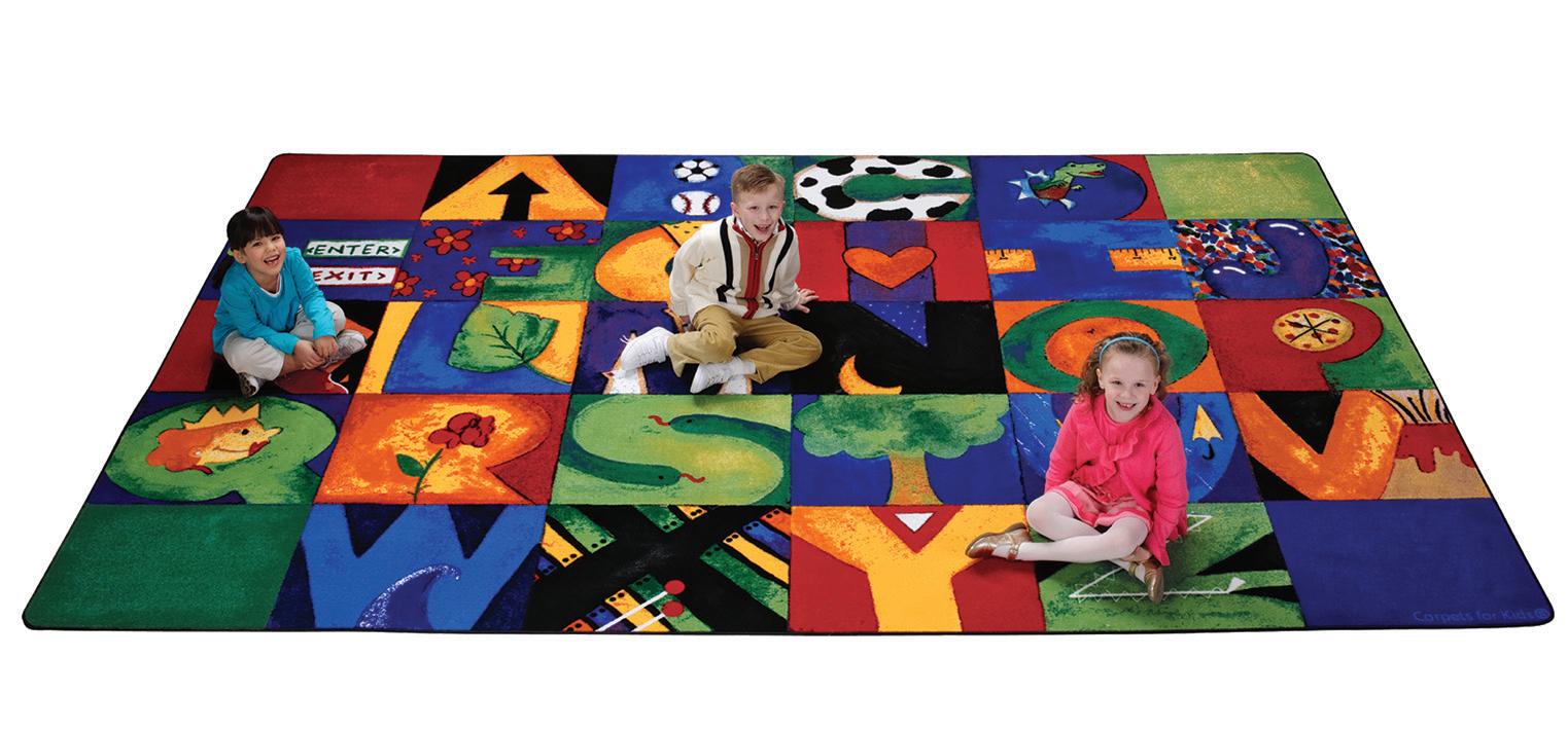 This simple, colorful rug is great for classroom organization. Each colored space makes a perfect place for children to sit on and have plenty of wiggle room, all while being surrounded by a literacy border.