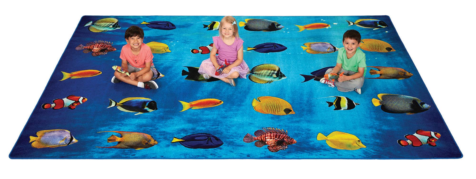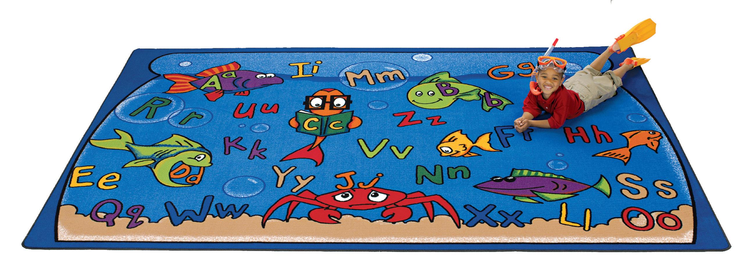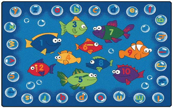 You’ll get hooked on literacy & counting with these fun, fishy friends. The lower-case alphabet bubbles on the outside of the rug provide a perfect circletime setting.