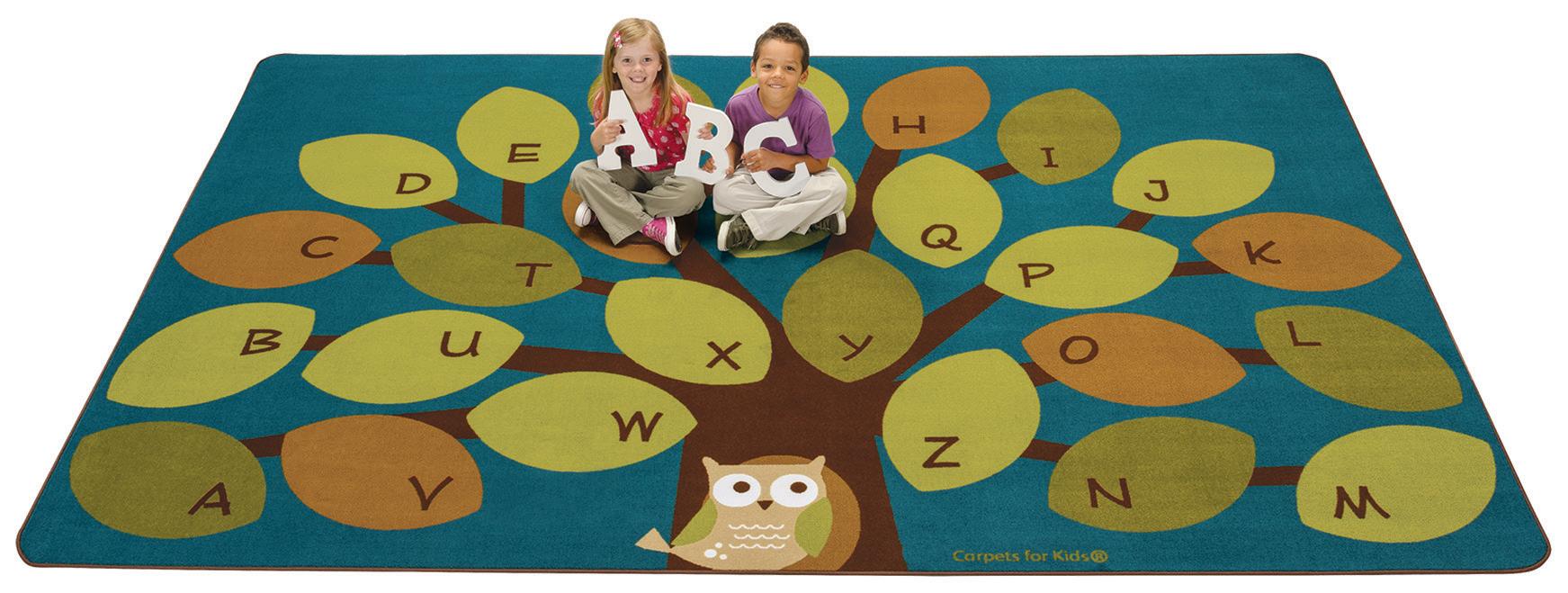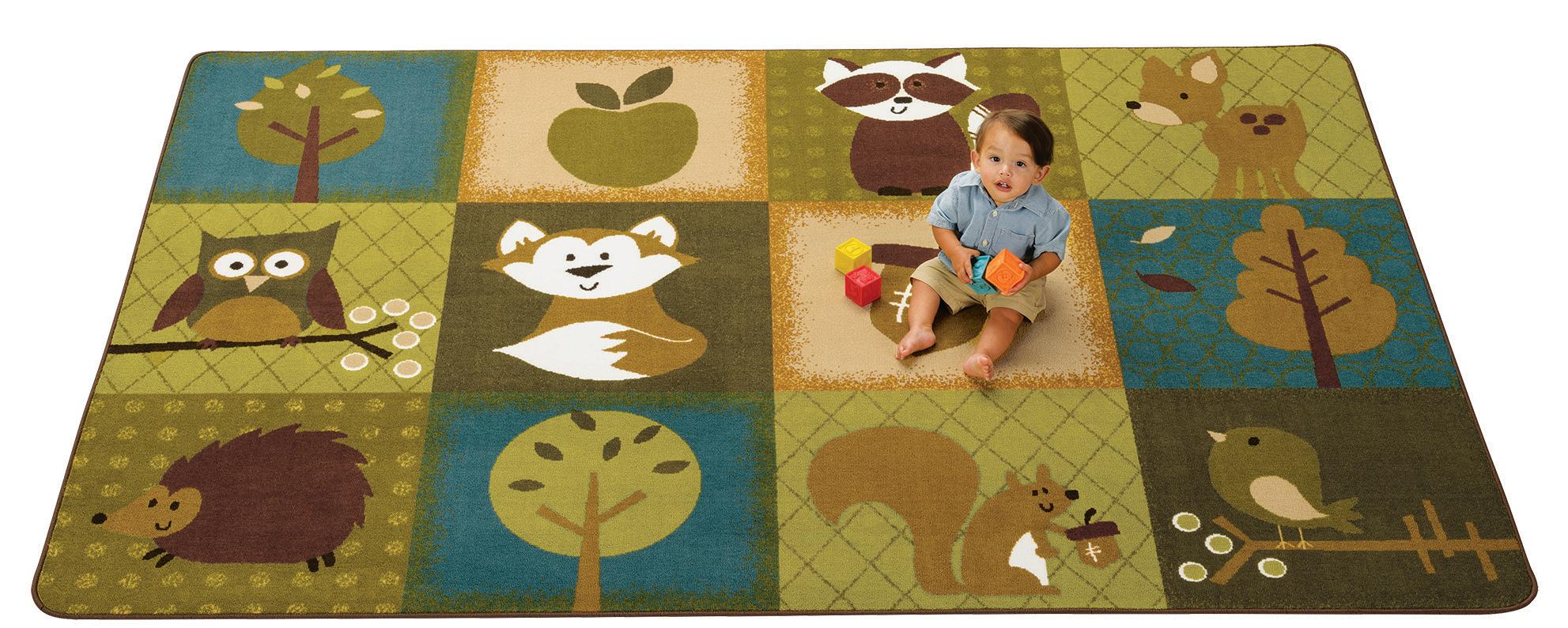 Kids will have a hoot as they find their own special place on this adorable woodland themed rug. Great for seating or developing gross motor skills where children can hop around letter to letter.
