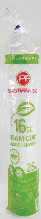 Vaso Foam 16 oz Plastifar Biodegradable PACK de 25 unidades