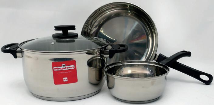 Juego de ollas 4 piezas Acero inoxidable Cacerola c/tapa de 24 cm Cazo de 16 cm Sartén de 24 cm