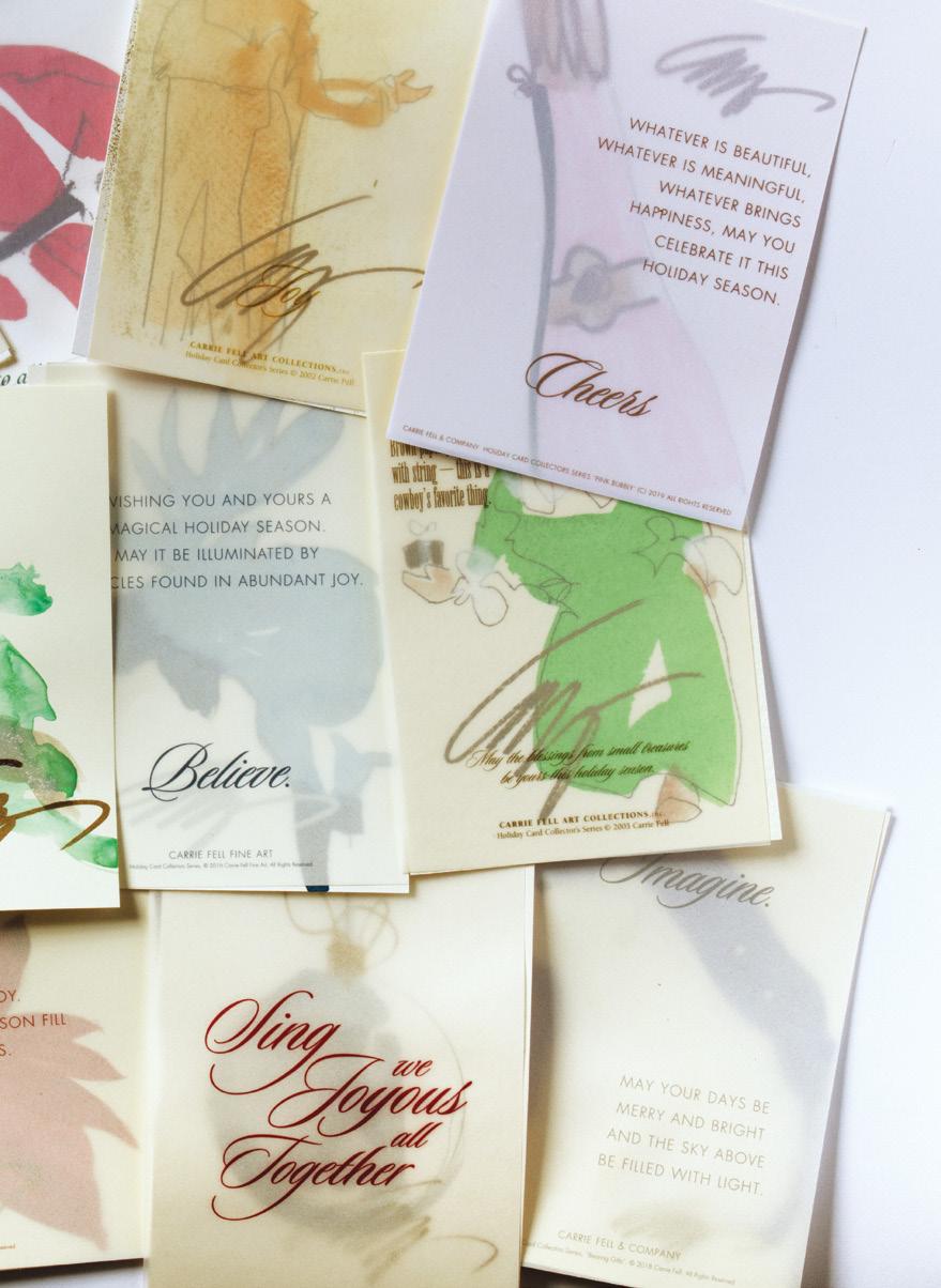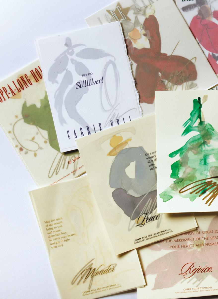 Also in this issue, we pay tribute to the tradition of the Holiday Card Collectors Series. Seeing the collage of some of Carrie’s most recognizable annual Holiday cards reminds us that even small gestures can leave a deep and lasting impression. If you’ve been on her “List” for the many years she’s been creating these original, mini-works every December, you’ll recognize “old friends” in the collection.