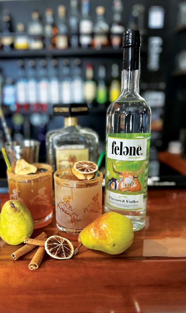 3. Add the pear vodka, amaretto, and cardamom bitters and stir again, making sure the honey has dissolved.