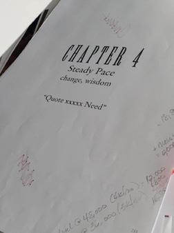 it worked out pretty specifically to distribute the content evenly across the pages. It was very mathematical, and we followed the format and plan through the first parts of the book … up through Chapter 3. However, when I returned from an unplanned absence, Chapter 4 had ballooned and was significantly longer than the previous chapters! Of course, there was so much pressure to finish that we couldn't go back and edit Chapter 4 to match the length of earlier chapters, and since the printing specs were based on a specific number of sheets, the subsequent chapters would have to be adjusted. But Chapter 4 was a comedy... It almost became a euphemism when things go off the rails, and it still makes me laugh when we say, "Well... at least it's not Chapter 4!"