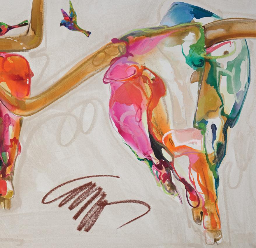 What is the secret ingredient in Carrie’s work? “We love that she is self-taught and branded herself on her own. She has a God given talent and has never taken that for granted. We have been a part of her life in good and not-so-good times. But through it all she has never lost the desire to paint and keep moving forward. She has had to reinvent herself based on how people buy, interpret or look at her paintings over the years… yet through those transitions she hasn’t changed the person she is. She remains the same CARRIE she has always been. That is deep rooted in her character which will always resonate with a buyer.”