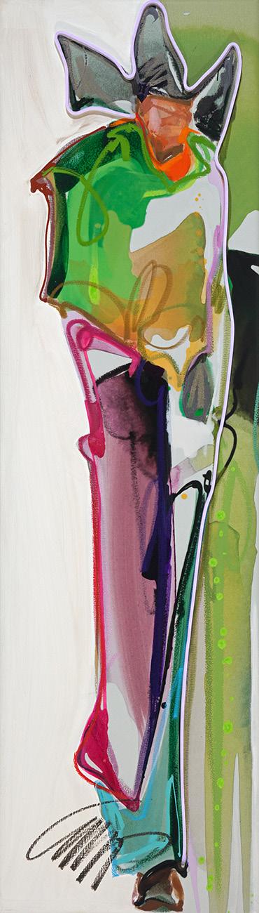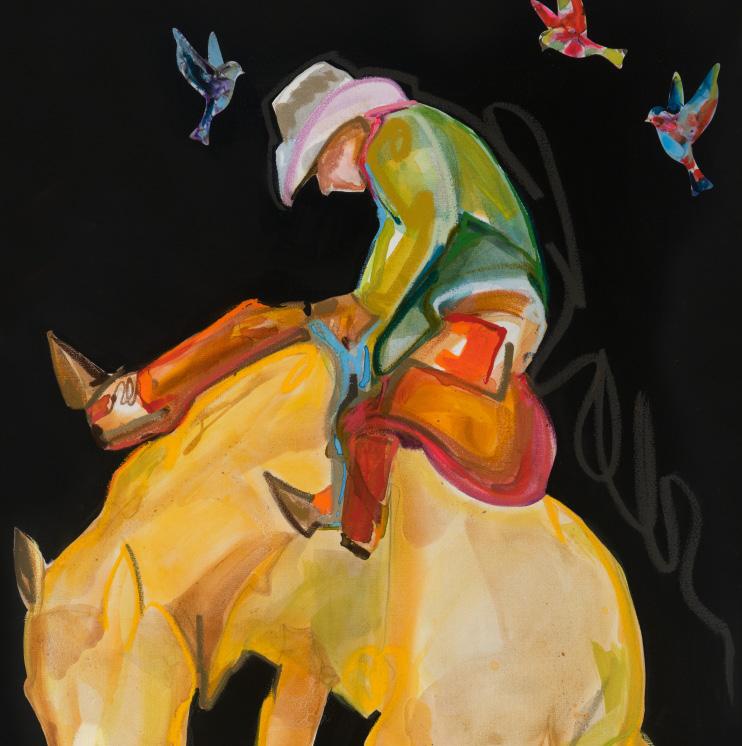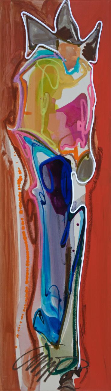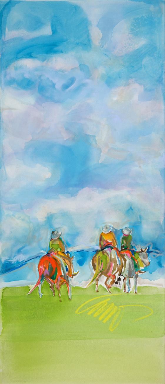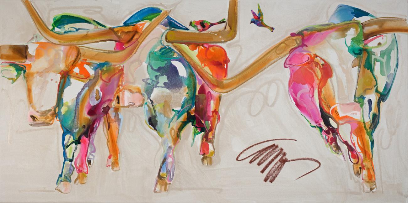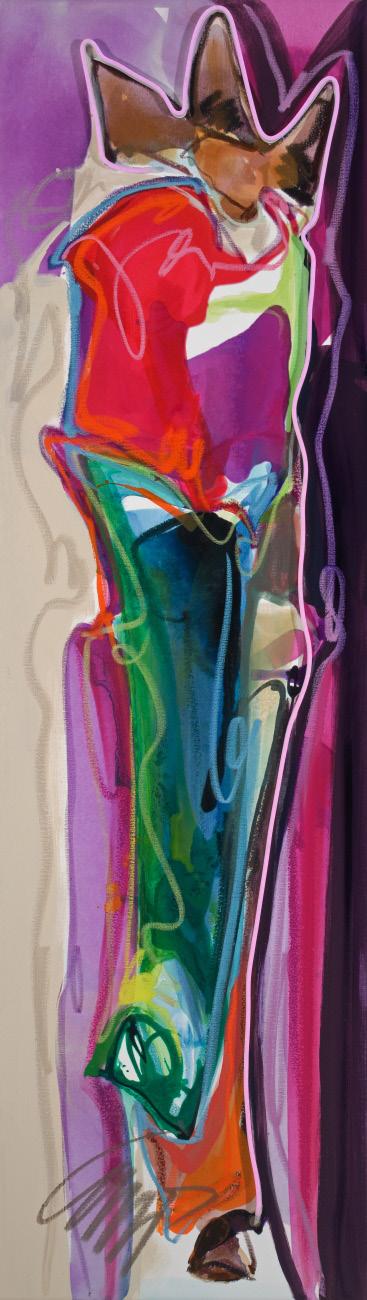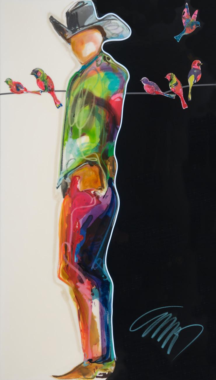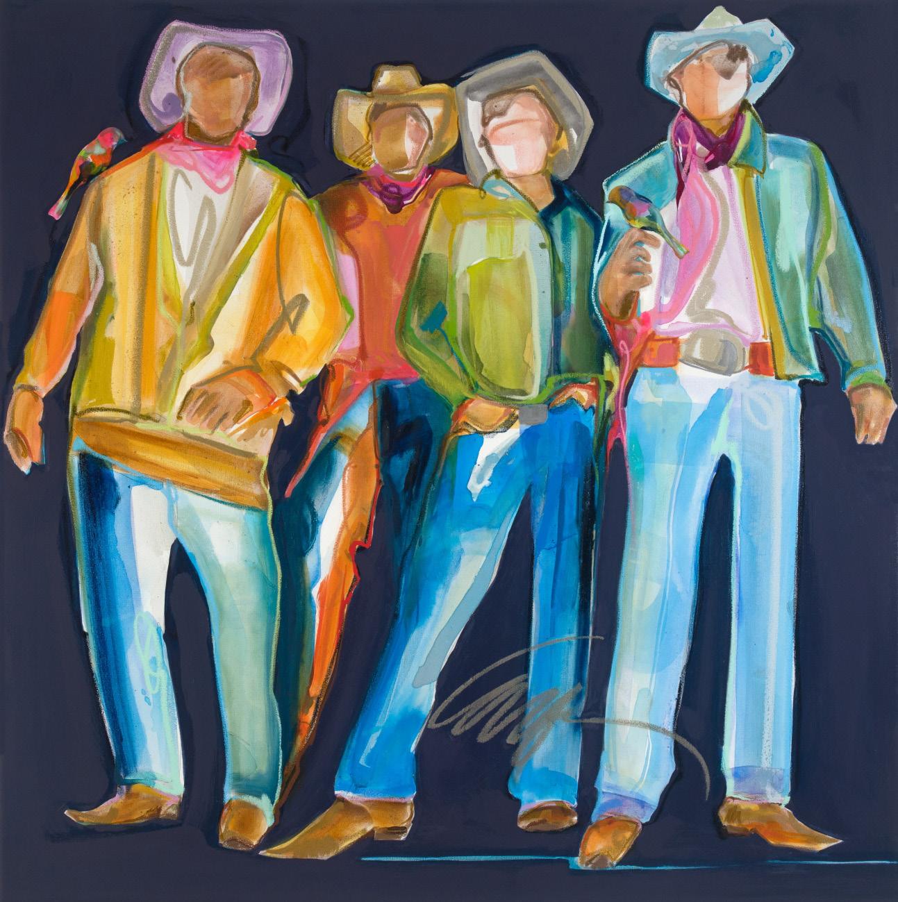 MODERN SOCIAL, or the dynamic NEON COWBOYS, Carrie’s work remains classically elegant yet highly contemporary. Her art does not attempt to portray a Western lifestyle, but rather an illusion that allows viewers to write their own stories in faceless images and abstract settings. Her art resonates deeply with audiences, drawing them back time and again with its emotion, movement, shapes, lines, colors, and textures, inviting viewers into a captivating story that unfolds on canvas. Few artists achieve such enduring appeal throughout their careers; Carrie Fell has always had this connection.