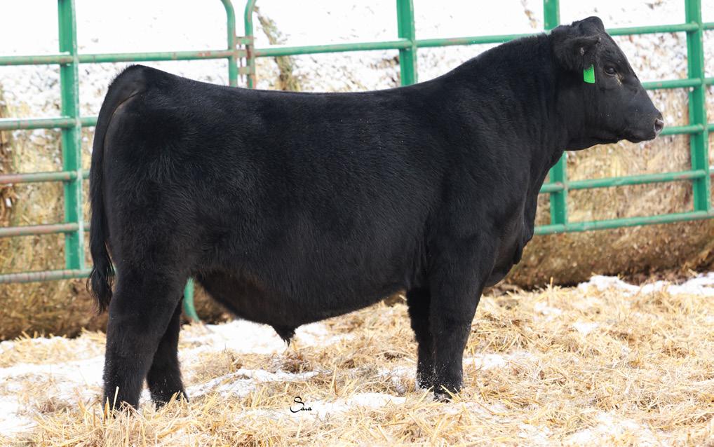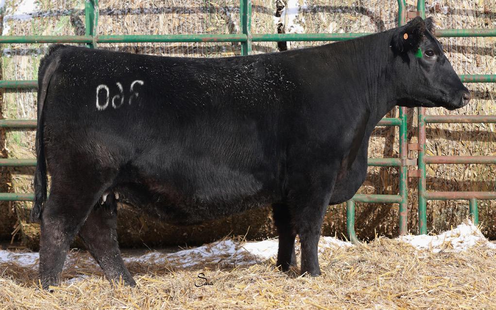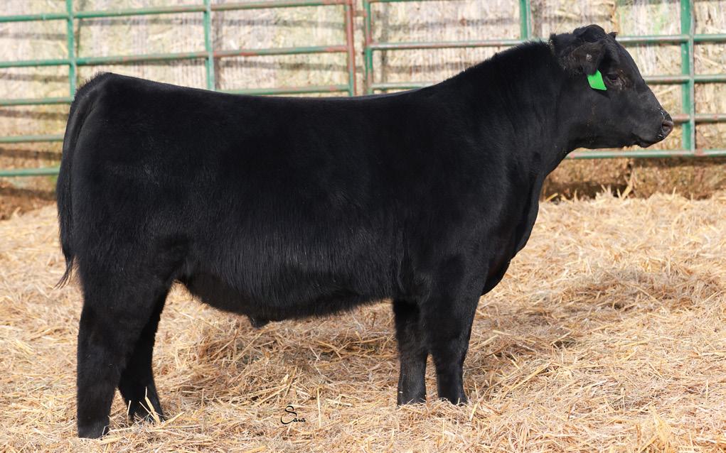 You will love the look and side profile this bred heifer has. Not only is she extremely attractive up through her front one third, but she has smooth shoulders, a long body and really square from hooks to pins. I really love the fresh look and youthfulness she carries.