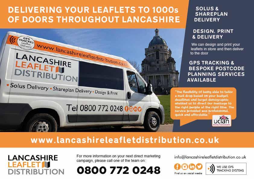 BOOK NOW FOR HOME APPOINTMENTS Removal of corns, callous, hard skin and ingrowing toenails No queues, no waiting and no parking • GENERAL FOOTCARE Card payment / bank transfer accepted. www.feetfirstmobilefootcare.co.uk A natural way to heal the body. A one-hour treatment that soothes and relaxes, whilst working on the points of the foot. It works by applying pressure to the foot which corresponds to organs and systems of the body in turn bringing relaxation and healing. REFLEXOLOGY JULIE HARWOOD (MCFH AinsFHP) CALL NOW TO MAKE YOUR APPOINTMENT 07813 969006 Learn to Sew l Knitting l Crochet Childrens Workshops l Craft l Water Colour l Needle Felting OUR WORKSHOPS Haberdashery l Wool l Needle Felting Supplies Fabric l Buttons & Ribbons Galore t: 01772 780883 e: longridgehaberdashery@gmail.com w: longridgehaberdashery.com Longridge Haberdashery, 68 Berry Lane, Longridge, Preston, PR3 3WH GIFT VOUCHERSAVAILABLE SPECIALIST WOOL STOCKIST INCLUDING WEST YORKSHIRE SPINNERS, RICO DESIGN & JAMES C BRETT BEGINNERS/IMPROVERS GET TO KNOW YOUR SEWING MACHINE & TECHNICAL HELP L NGRIDGE HABERDASHERY SAMENEWNAME SHOP!