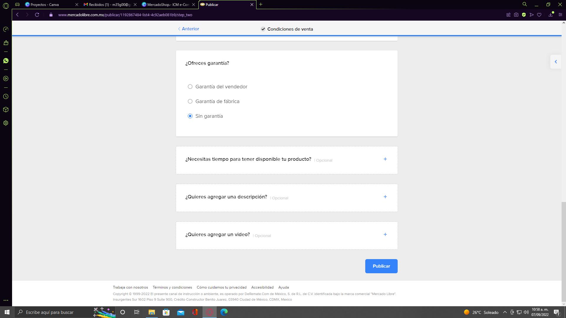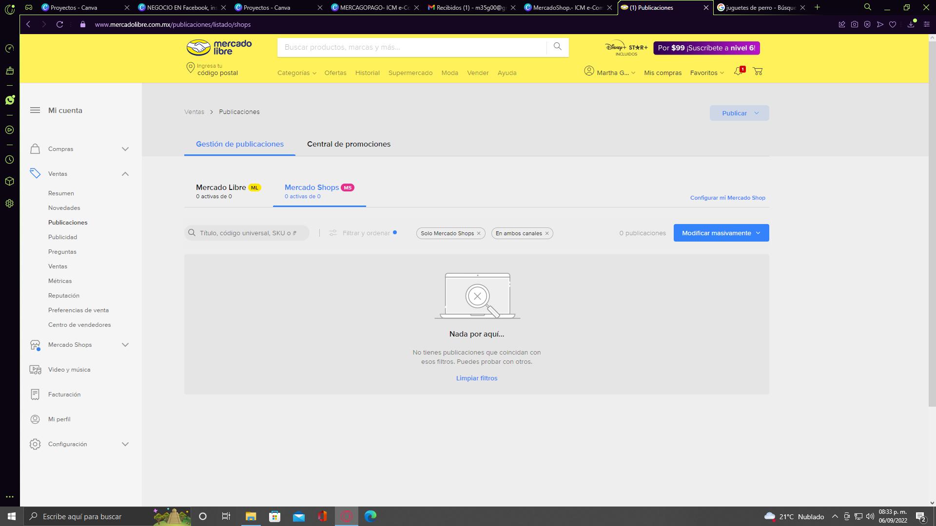 Para publicar, solo debes de ir a VENTAS, seguido de PUBLIACIONES.