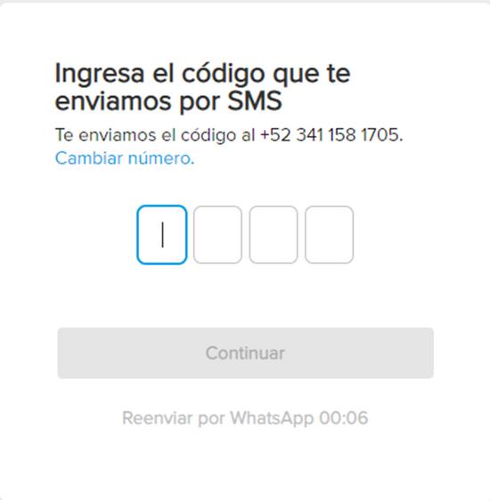 A continuación, nos pedirá un código de 4 dígitos (el cual se nos fue enviado al correo antes colocado).
