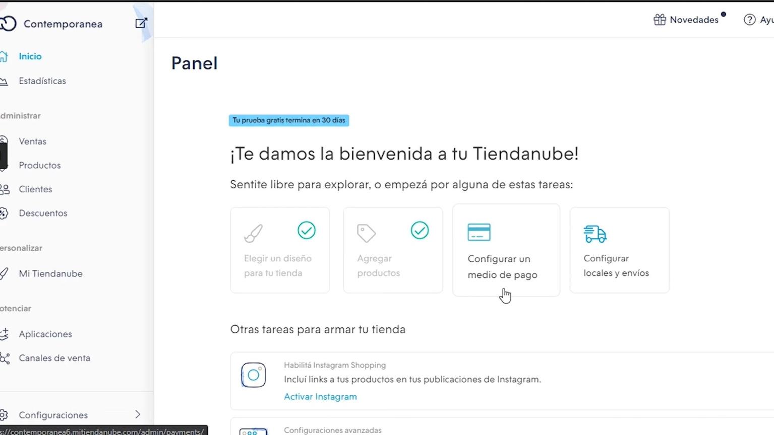 Escoge la que concideres mejor y configura siguiendo los pasos que te marca tiendanube