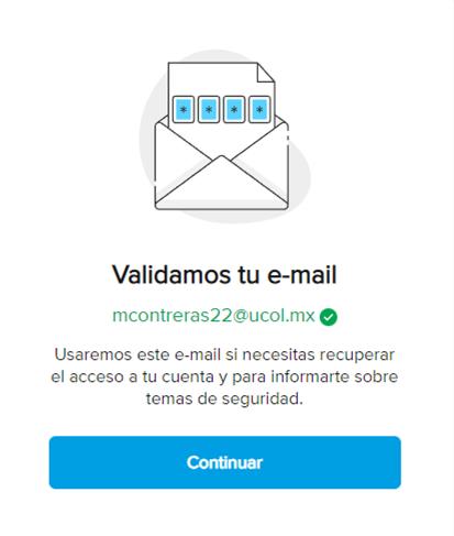 A continuación, nos pedirá un código de 4 dígitos (el cual se nos fue enviado al correo antes colocado).