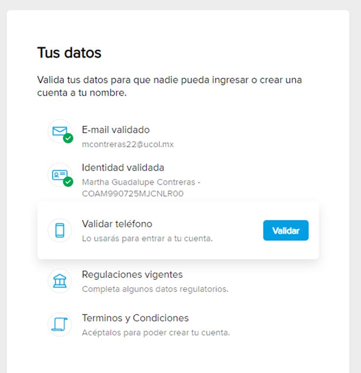 Si aun no se llenan todos los apartados de tus datos personales, te los pedirán ahora.