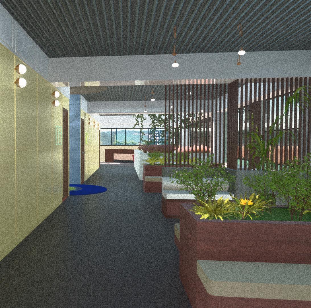 The social area of the building is distinguished by the presence of a charming arrangement of planters that adds a harmonious and natural touch to the environment.