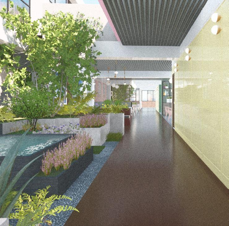 Cozy environments that attract all those who wish to explore, with a variety of shops and restaurants. Additionally, spaces are provided for relaxation and appreciation of vegetation.