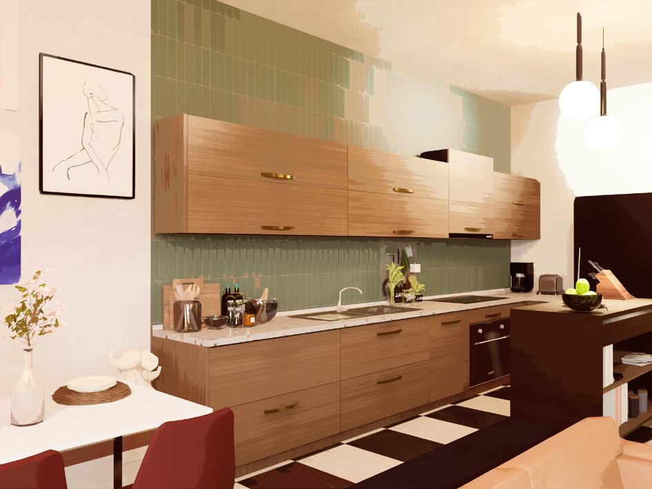 In the quest to maximize space, the importance of visual harmony has not been overlooked. Every element, from cabinets to tile details, has been carefully selected and strategically placed to achieve a modern and cohesive aesthetic.
