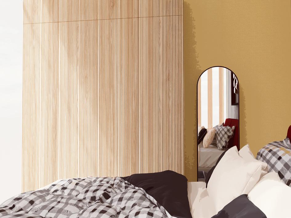 The design of the residential floor has been conceived in such a way that the apartments do not appear isolated from each other, but rather a sense of community is encouraged. This is achieved by implementing corridors that connect the different apartments and the resting areas distributed within them, thus creating a cozy and comfortable environment for both residents and visitors