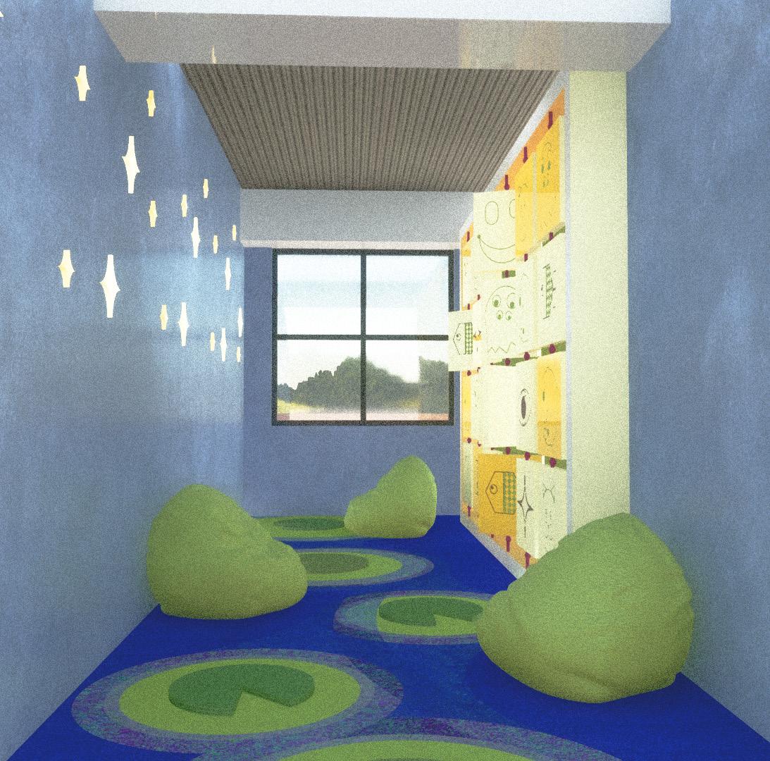 In the choice of colors, a soft palette with some pastel tones was chosen, aiming for the transition towards calmness and tranquility to be a central element in the space.